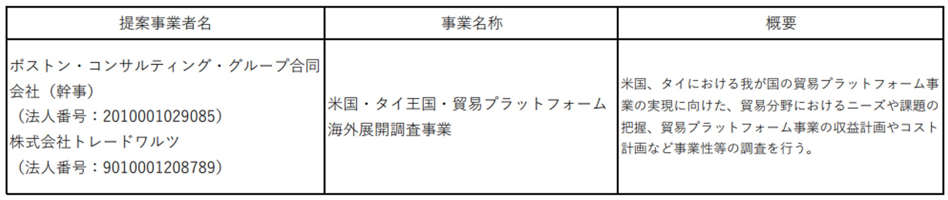 「今回インフラFS事業として採択頂いたことへ感謝致します。弊社はASEAN・APECはもちろんのこと、インド太平洋地域のサプライチェーン強靭化に貢献したいと考えております。そのためには、日米の連携は必要不可欠なため、今回貿易PFの米国展開の可能性を調査して参ります。またブロックチェーンを国際間で共同保有する取組を一歩踏み出すことで、世界規模での信用基盤構築へ歩を進めて参ります。」