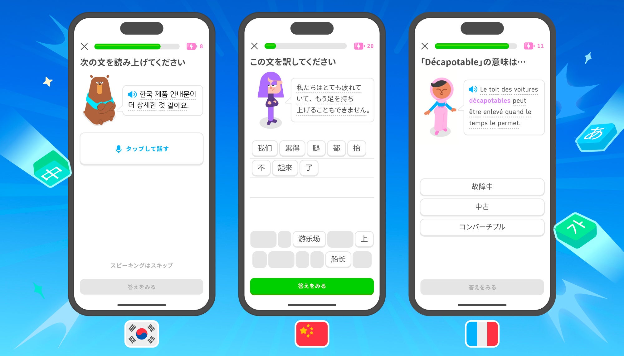 Duolingo, Inc.(本社所在地:Pittsburgh, USA)が提供する教育アプリ「Duolingo」は、英語・スペイン語・フランス語・ドイツ語・イタリア語・ポルトガル語・日本語・韓国語・中国語の9つの主要言語において、上級レベルまで学べる学習コンテンツの提供を開始しました。