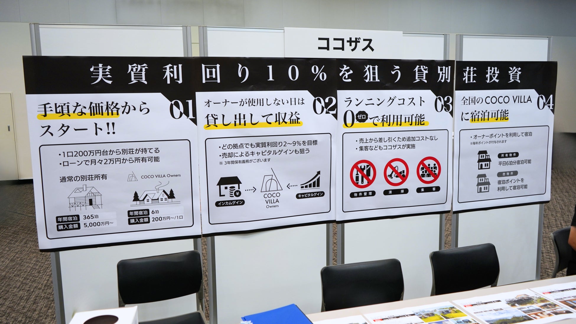 今回のイベントでは、新たな別荘投資「COCO VILLA Owners」の魅力をお伝えするブースを設置し、「資産形成×別荘利用」の運用スキームを幅広くお伝えいたしました。