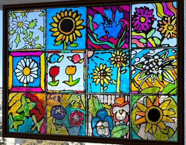 展示作品:春日部市立上沖小学校6年生卒業作品 ステンドグラス「光の花言葉」