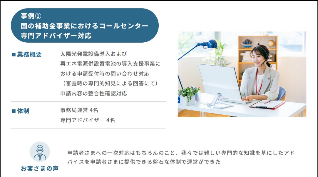 国の補助金事業におけるコールセンター・専門アドバイザー対応