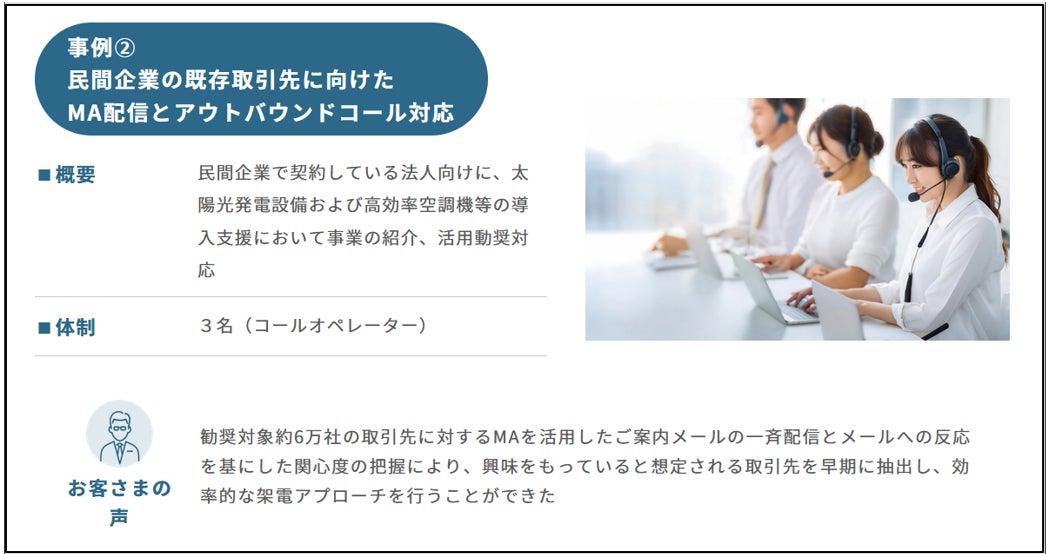 既存取引先向けMA配信およびアウトバウンドコール対応