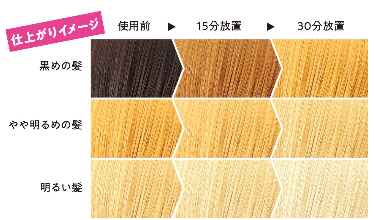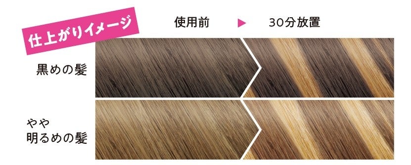 ●仕上がりの髪色は、ご使用前の髪色、髪の傷み具合、髪質、室内温度、放置時間によって異なります。