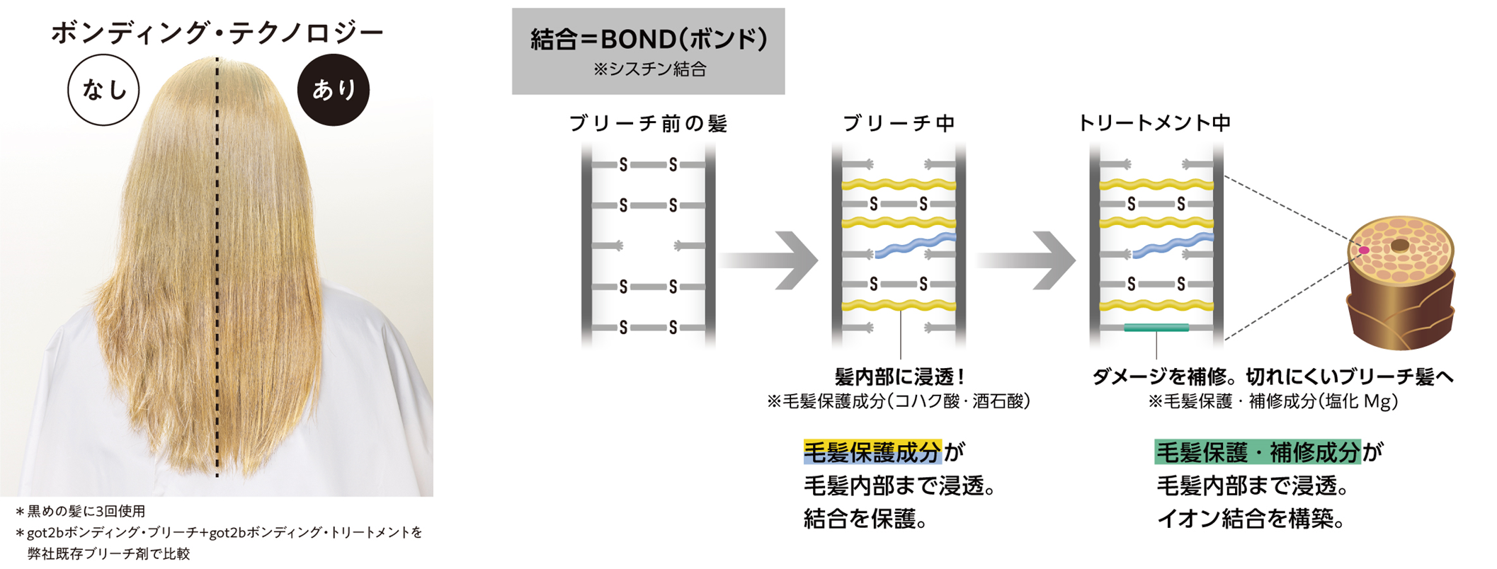 ダメージレスを追求したブリーチオンカラーNo.1ブランド「got2b」からさらなる進化を遂げたブリーチが登場!ボンディング成分2倍配合でさらに切れにくいブリーチ髪へ