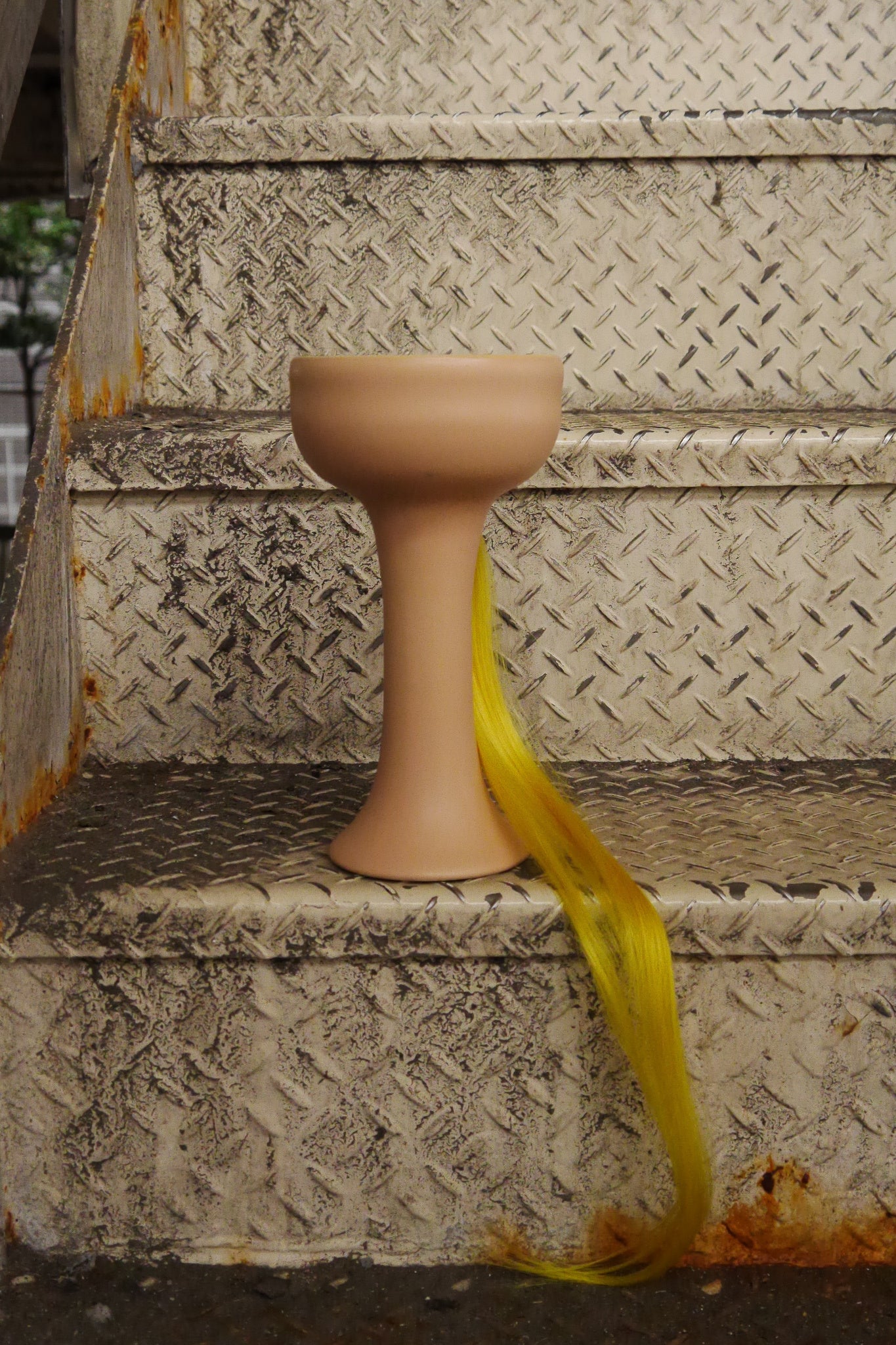 襟足の長いヘアスタイルを思わせる形をしたものや既製品の九谷焼に「改造」を施した茶碗。什器から持ち上げるとバイク音や暴走族のかけ声が鳴り、全ての茶碗を持ち上げると「集会」が始まるように演出。茶碗5点、オブジェ3点の計8点を展示します。
