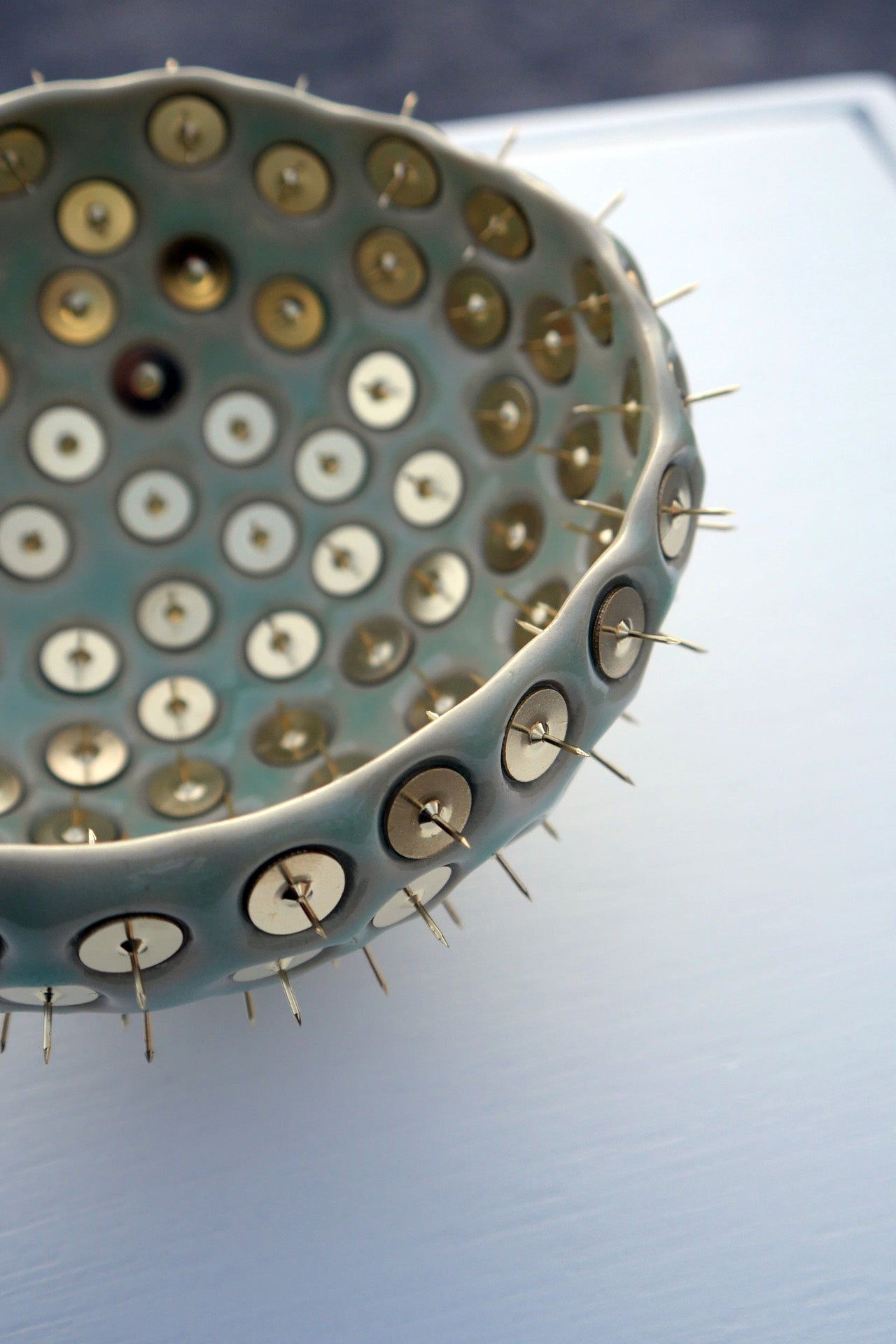 今にも動き出しそうなアメーバーのようなものや体温や柔らかさが伝わってくる下着や乳房など、どちらかというと穏やかな印象の陶器を制作してきた彼にとって荒くれたモチーフでのインスタレーションは初の試み。