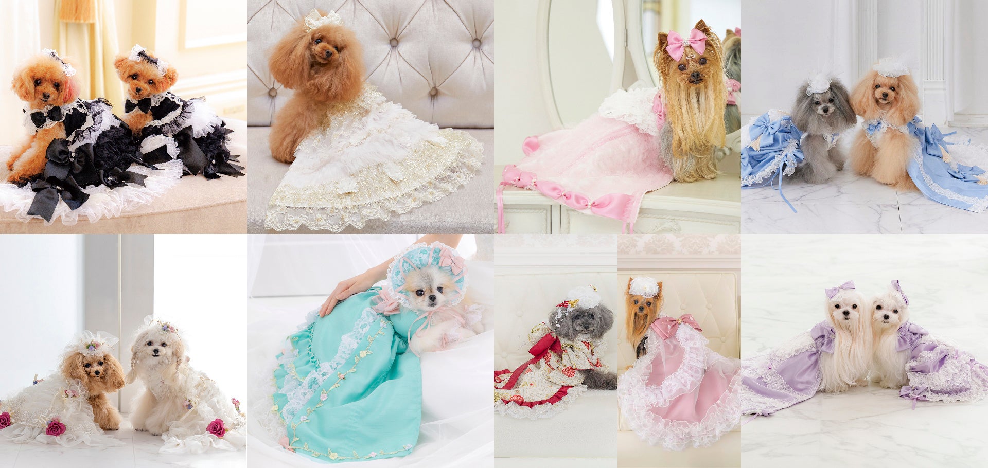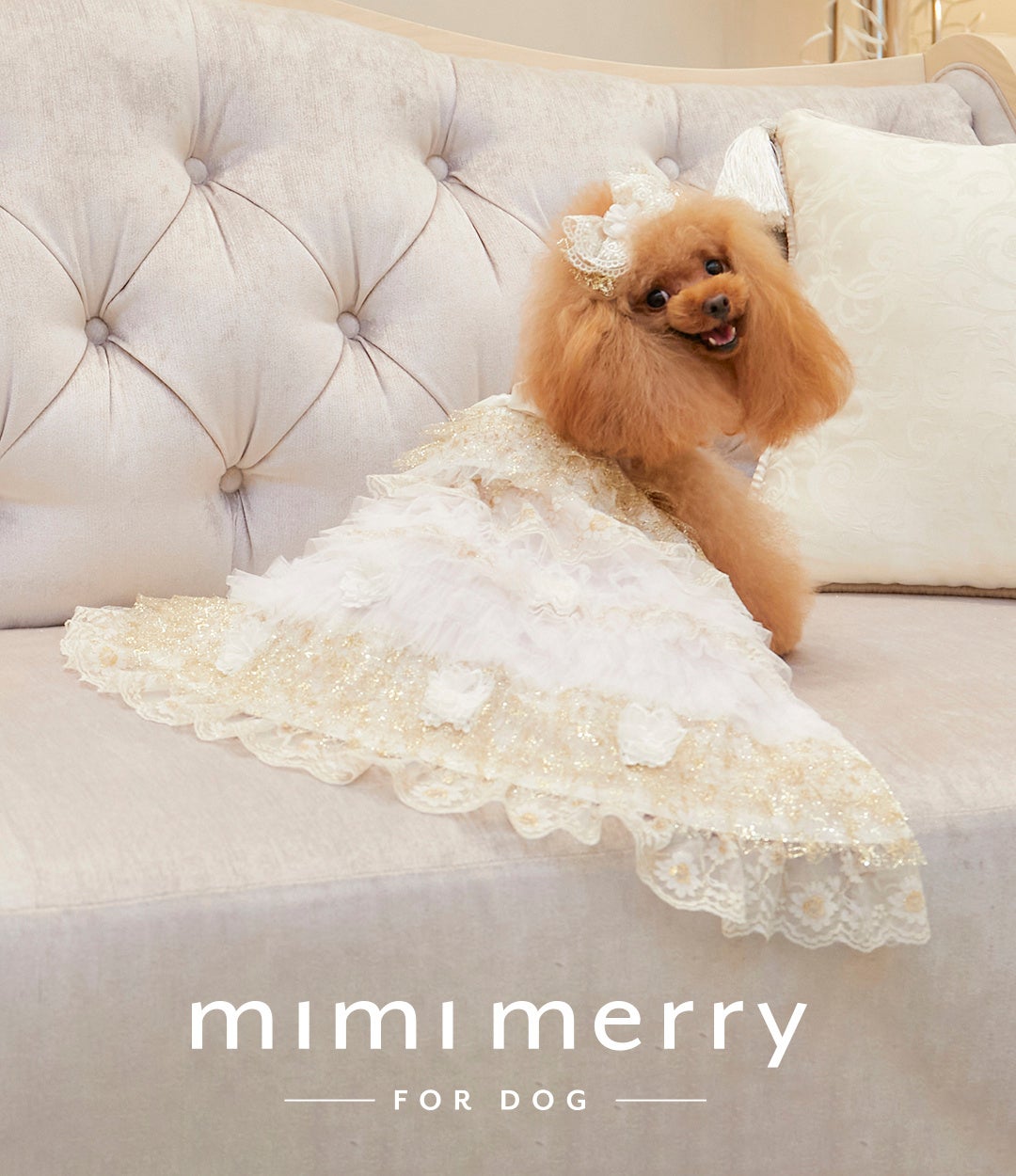 mimimerryは、「かわる、かわいい かわる、たのしい」をコンセプトに、一着で2way、3wayと変身できる、仕掛けのある犬用ラグジュアリードレスを展開するブランドです。特許取得のドレスを中心に展開し、これまで発表した全ドレスにおいて、カタログモデルを起用してきました。