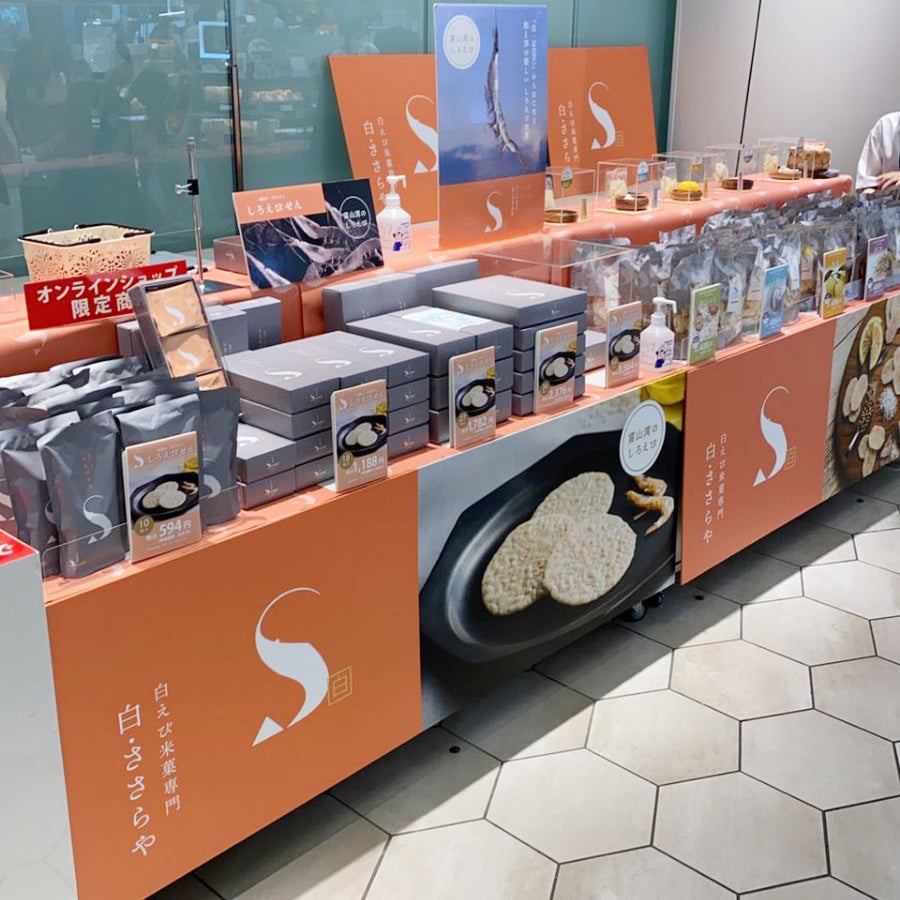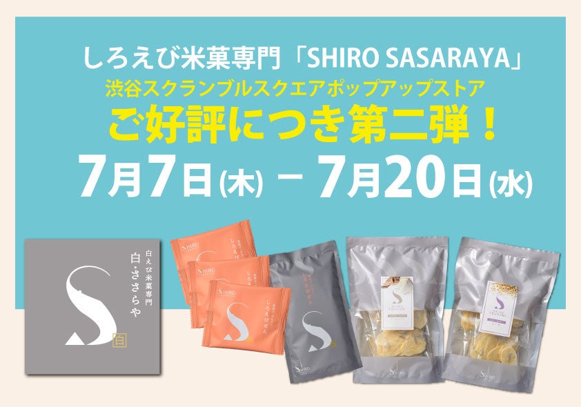 ご好評につき第二弾!渋谷スクランブルスクエア しろえび米菓専門「SHIRO SASARAYA」ポップアップストア 7月7日(木)から7月20日(水)まで 日の出屋製菓産業