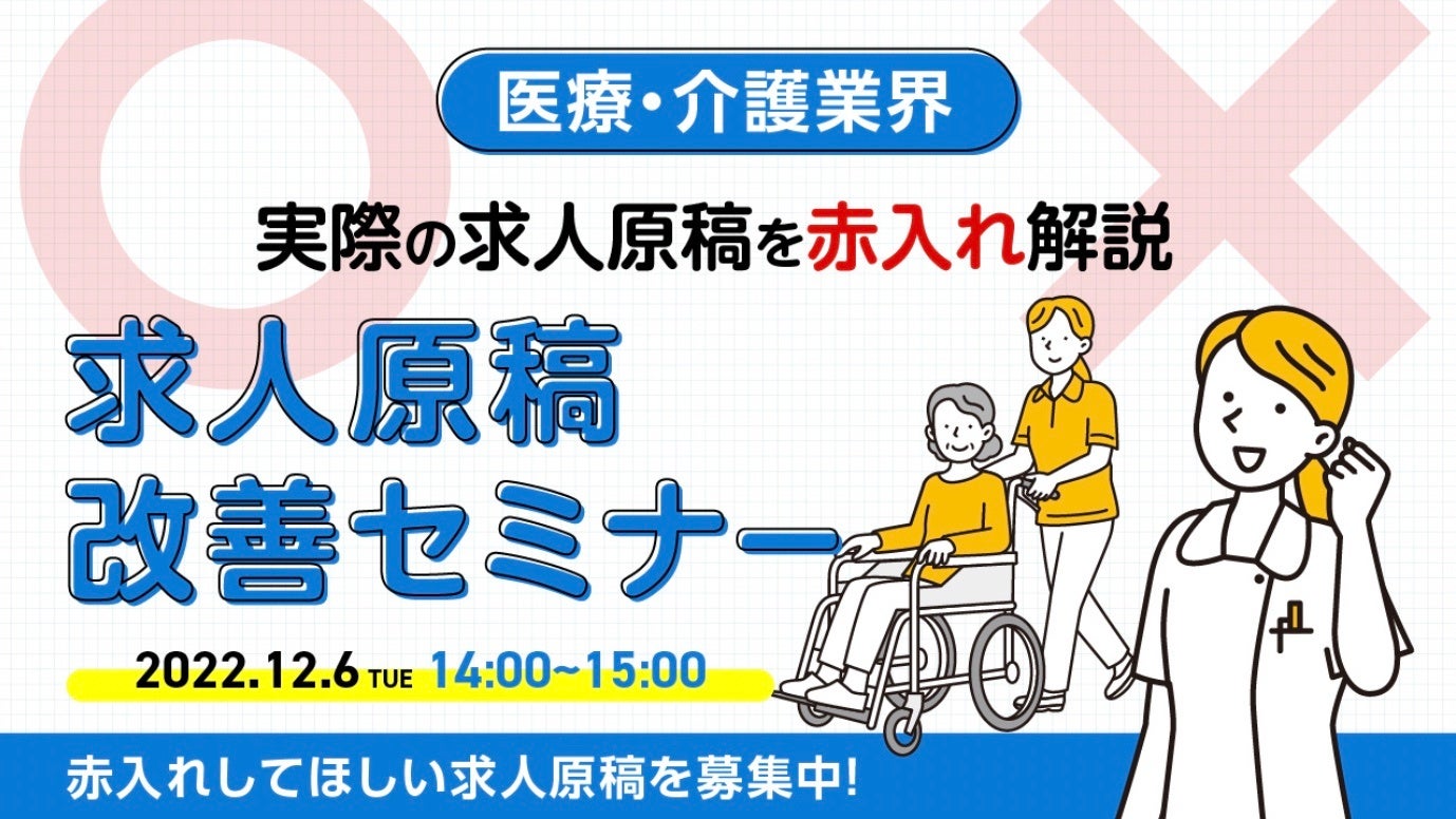 【社員採用担当者向け】医療・介護業界の魅力を伝える求人広告改善セミナーを開催!リアルタイムの赤入れで改善点を詳しく解説します