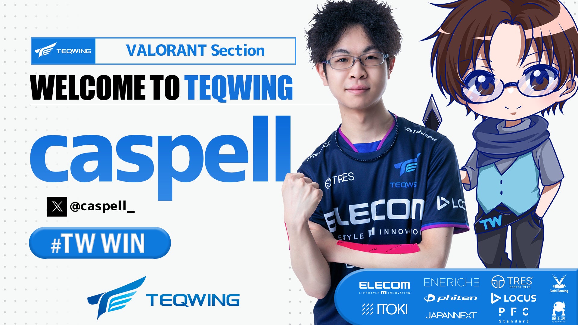 合同会社テックウイング(千葉県千葉市中央区、代表:加藤友大、URL:https://teqwing.com/)が運営するeスポーツチーム「TEQWING e-Sports」(https://teqwing-es.com/)は、「VALORANT部門」を設立し、caspell選手が加入したことをお知らせいたします。