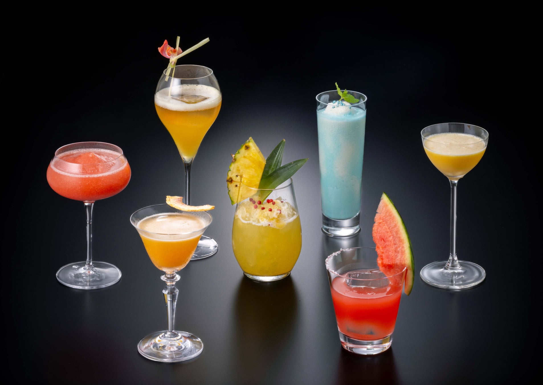 真っ赤な夏の果実スイカをはじめ、パッションフルーツやマンゴー、パイナップルなど南国フルーツの魅惑的な香り、優しい甘み、酸味を堪能できる7種のカクテルを楽しめる「サマーカクテルフェア」。