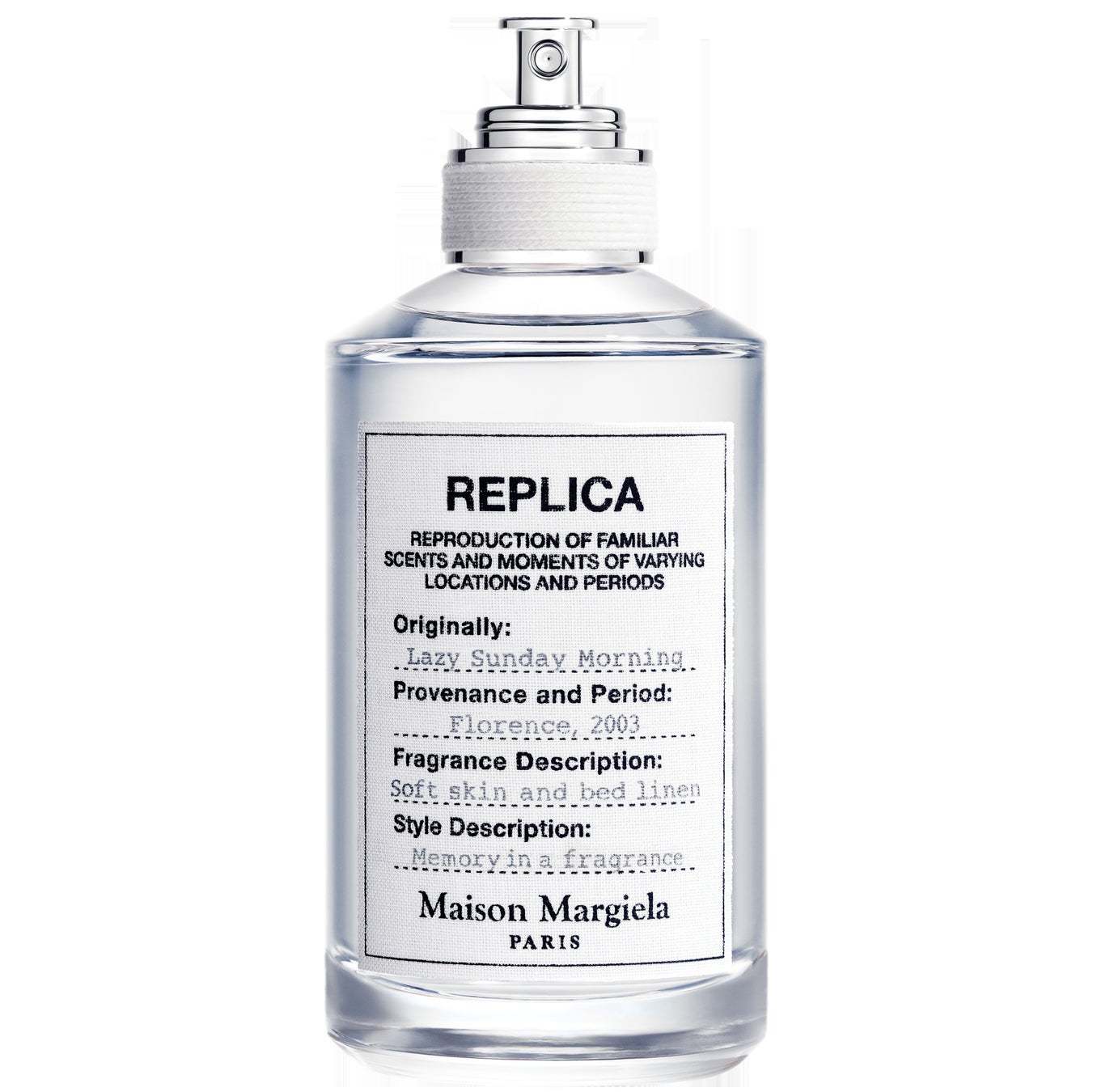 1994年、世界中から見出されたヴィンテージの洋服やアクセサリーを再現した「レプリカ」カプセルコレクションをスタートしました。「レプリカ」のコンセプトは時代を超えた普遍性にあり、オリジナルの信頼性と魅力は忠実に再現され、「レプリカ」ラベルには元の生産国や機能、年代が記されています。2012 年、このコンセプトに着想を得て「レプリカ」フレグランスが誕生しました。それぞれのシーンを再現した香りが人々の潜在意識に語りかけ、記憶やムードを呼び覚まします。