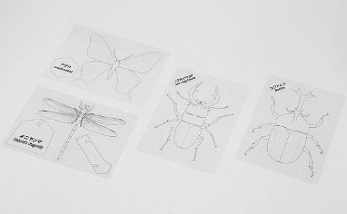 プラ板に好きな色を塗って、自分だけのオリジナルカラーの昆虫が作れます。