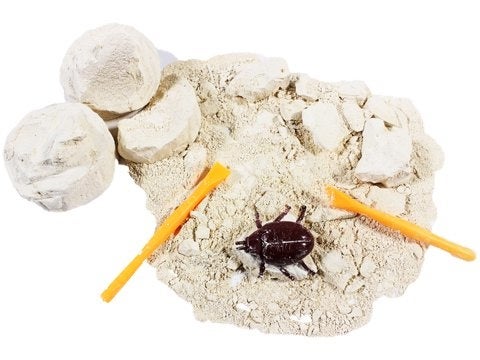 道具を使って、砂の塊の中に埋まっている昆虫を発掘できます。