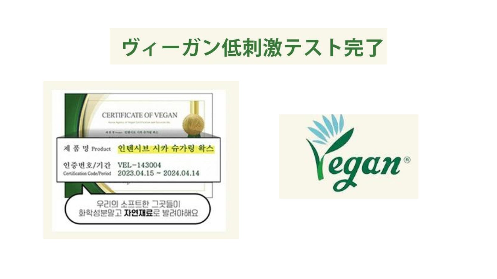 ポイント2)新商品「インテンシブ シカシュガーリングワックス」発表、セルフワックス初心者のための、100%天然由来成分のワックスが初登場!ヴィーガン低刺激テストを完了した食べても大丈夫な、優しい成分。セルフワックス初心者の方も簡単な使い心地で快適なセルフワックスの時間へ