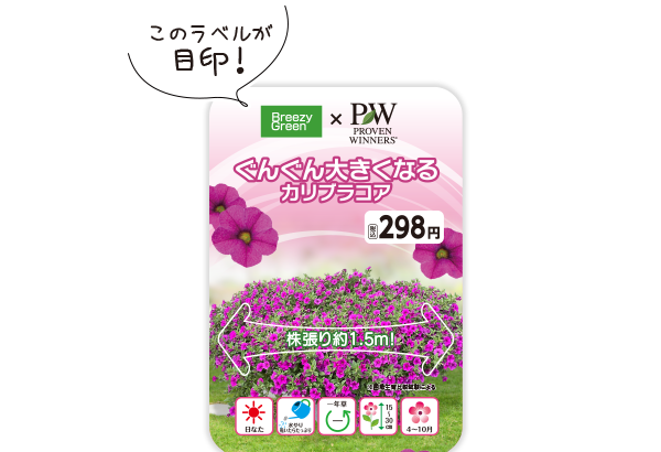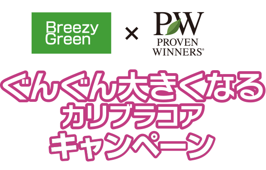 この度、当社のオリジナルブランド「Breezy Green」と株式会社ハクサンの植物ブランド「PROVEN WINNERS(PW)」がコラボ開発した「ぐんぐん大きくなるカリブラコア」のキャンペーンを開催いたしますのでご案内いたします。