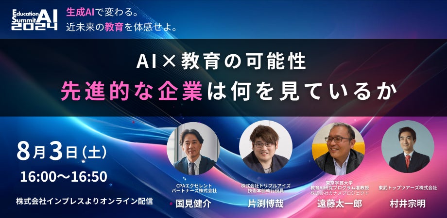 「教育AIサミット2024」にて、「AI×教育の可能性 先進的な企業は何を見ているか」の開催を発表