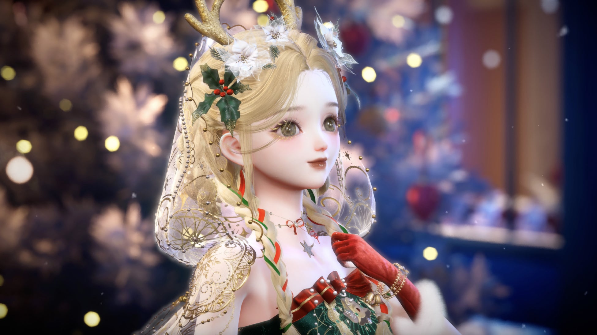 また、ドレスにあしらわれたトナカイ模様にはモーションがあり、ドレス内を元気に飛び回ります。可愛らしいトナカイの動きにも注目して見てみてください!