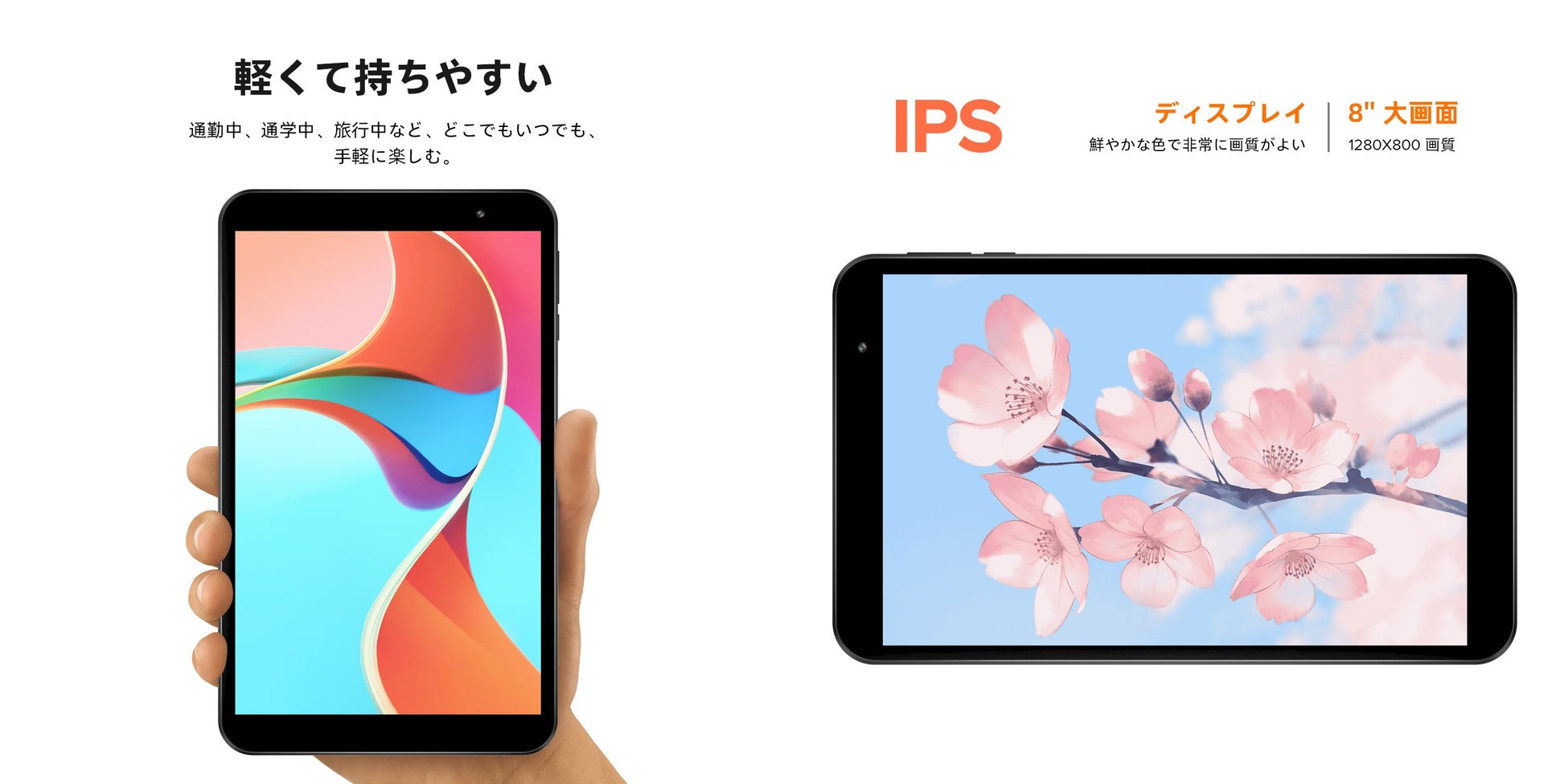 「P80」は広視野角IPSディスプレイを使用しており、1280x 800 FHD解像度を提供できま。16:10の最適な画面比率により、ビデオ視聴体験を大幅に向上させます。6mm狭いベゼルと8インチの精巧なサイズにより、片手でも操作できます。素晴らしい映画館をどこでも持っていきます。