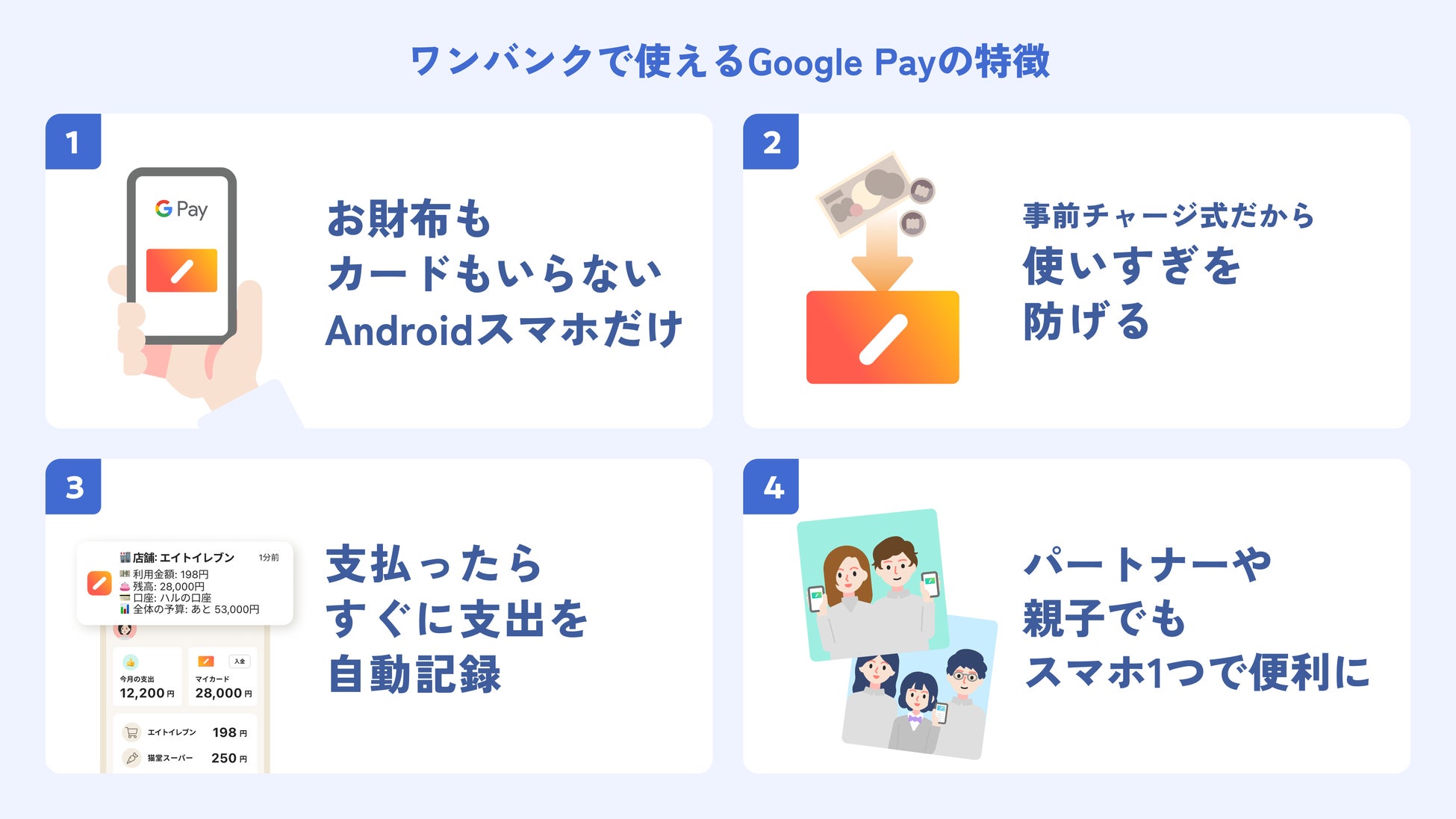 今回、その取り組みの一環として、日常のキャッシュレス体験をさらに手軽で便利にするため、ワンバンクのAndroid版アプリが新たにGoogle Payに対応しました。