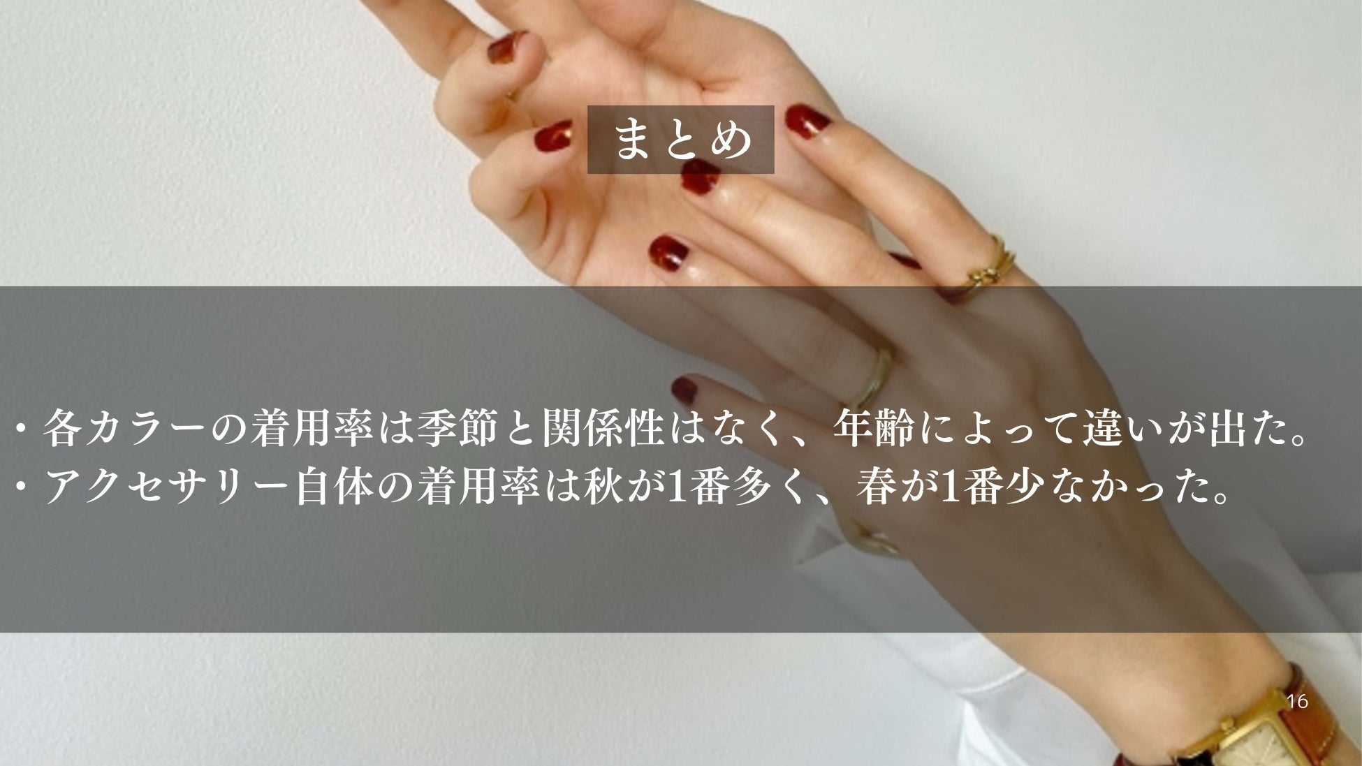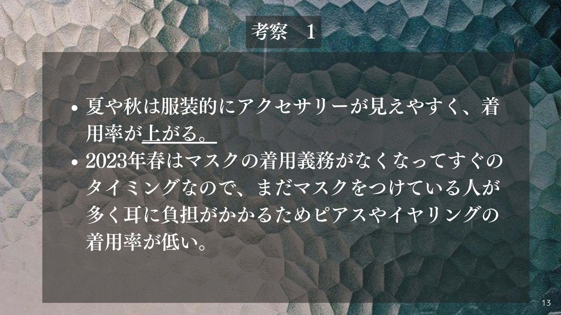 この授業内で、学生が実際に企画・データ分析した成果から、特に優秀と評価したレポートをシリーズで公開します。2025年第1弾のテーマは「シルバーとゴールドのアクセサリーの着用傾向」。