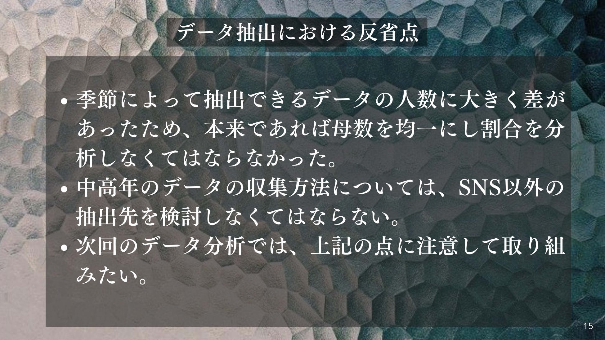 Instagramから収集した情報ソースを引き合いに、データに基づいて様々な観点から分析されています。
