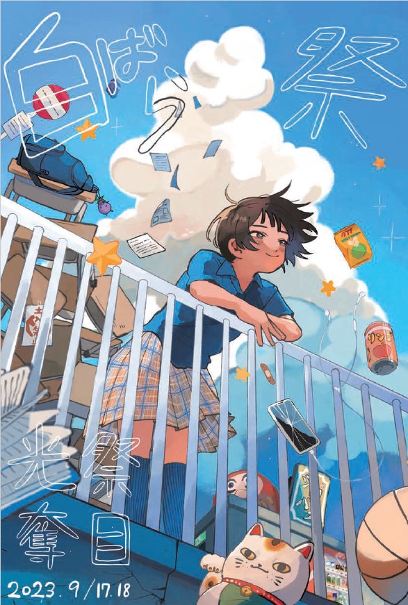 このテーマには四字熟語である「光彩奪目」の"目を見張るばかりの美しい彩り”と文化祭の"祭”をかけて、生徒全員がそれぞれ活き活きと輝いている文化祭にしようという意味が込められています。