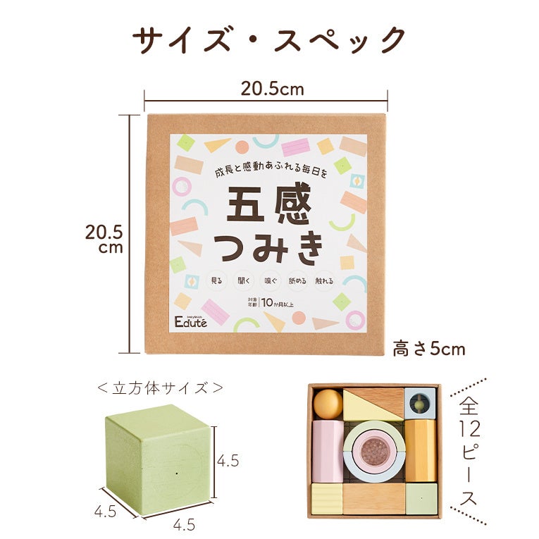 エデュテ株式会社(本社:兵庫県神戸市、代表取締役:中尾信也)は、10ヶ月以上の赤ちゃんを対象に、五感を刺激する新商品「五感つみき」を発表しました。