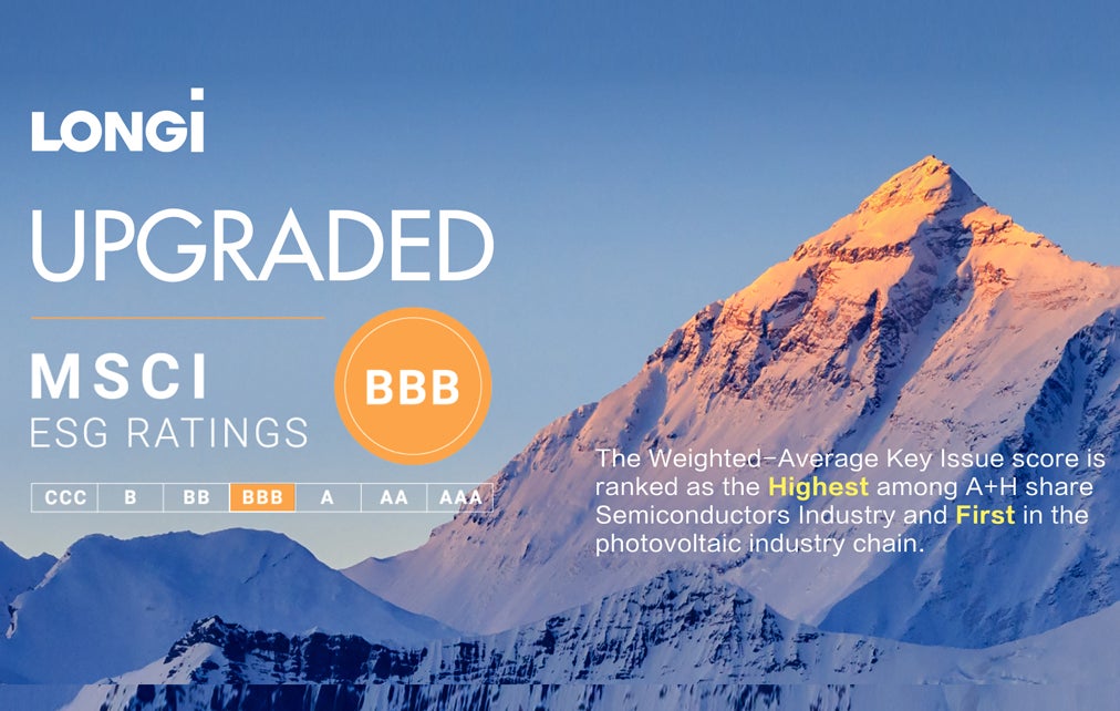 LONGi、MSCIのESG評価で太陽光発電産業チェーン最高ランクのBBBを獲得