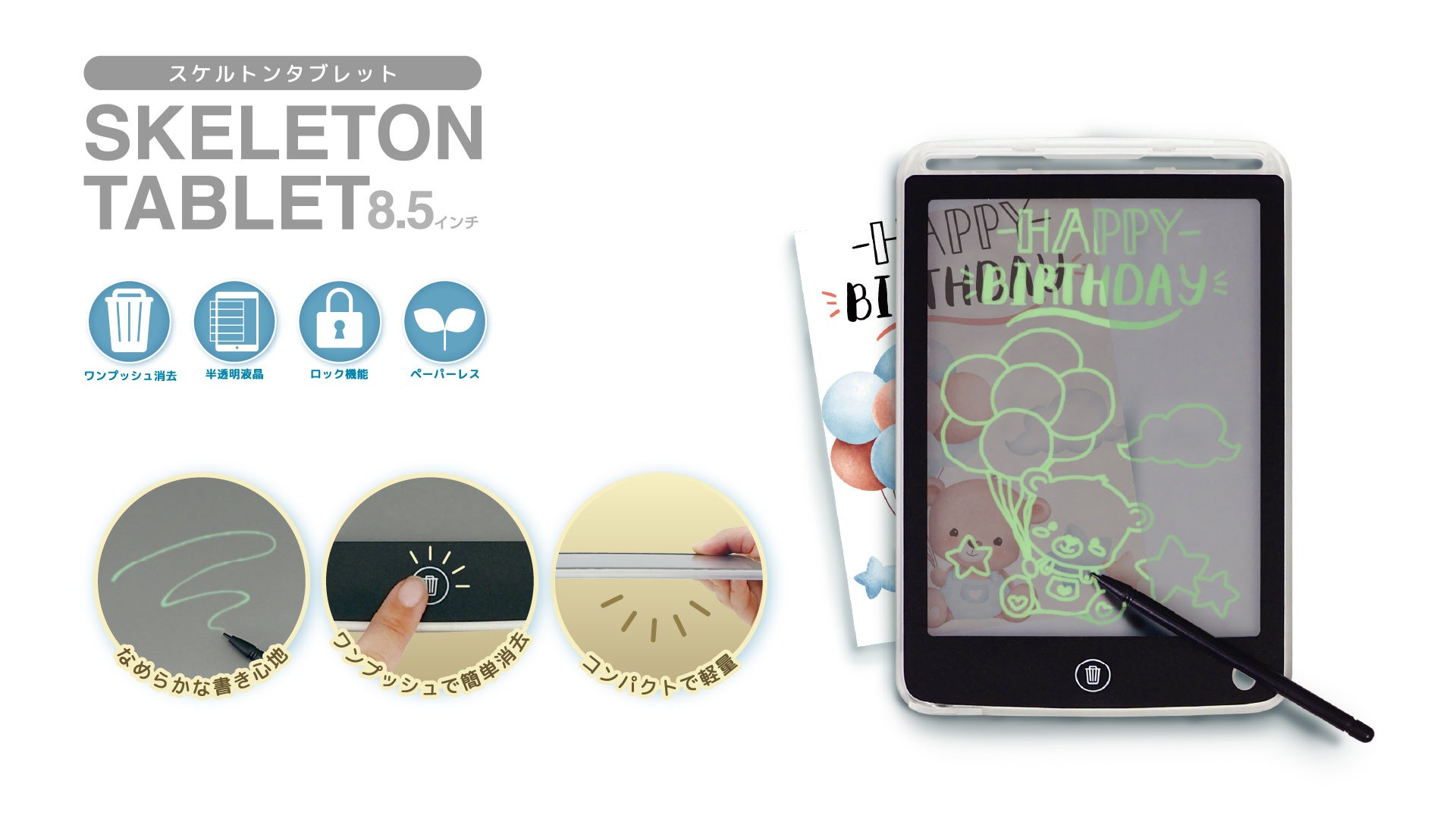 「冷蔵庫にシュークリーム入ってるよ~」伝言やお絵かきに便利な「スケルトンタブレット」が4月新発売