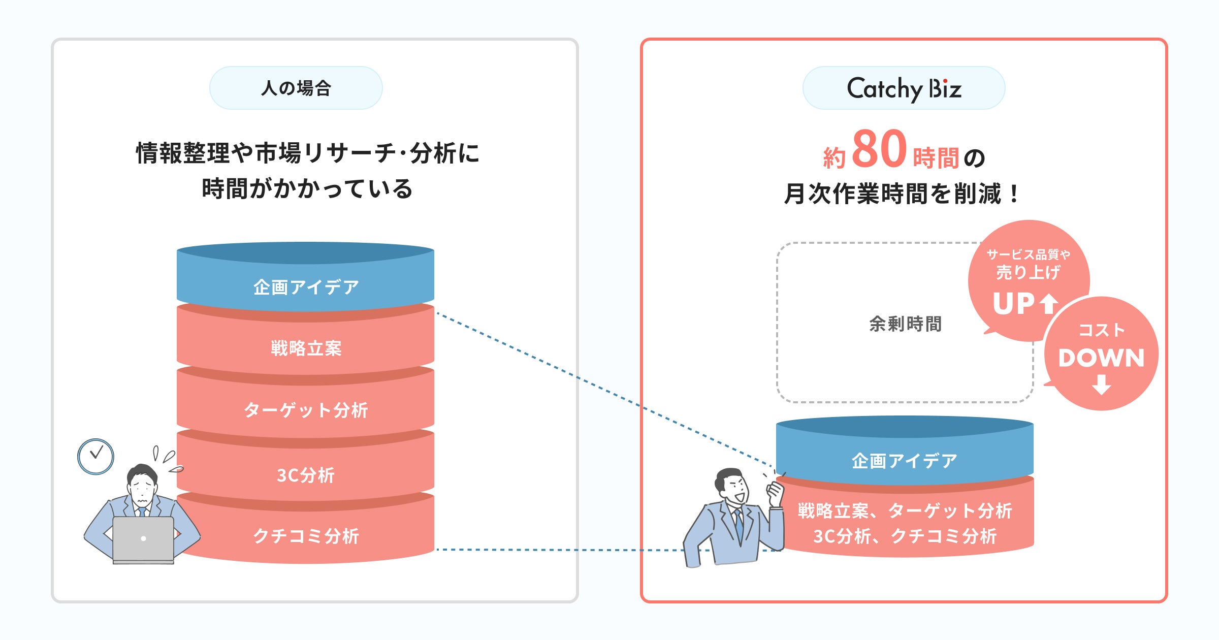 当社は事業会社向けに、最先端のAIアシスタントによってマーケティングリサーチ・分析業務を自動化できるサービス「Catchy Biz」の開発を行っています。