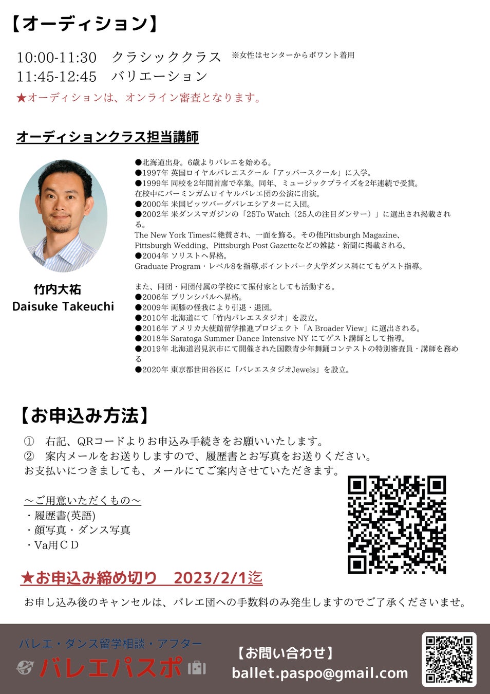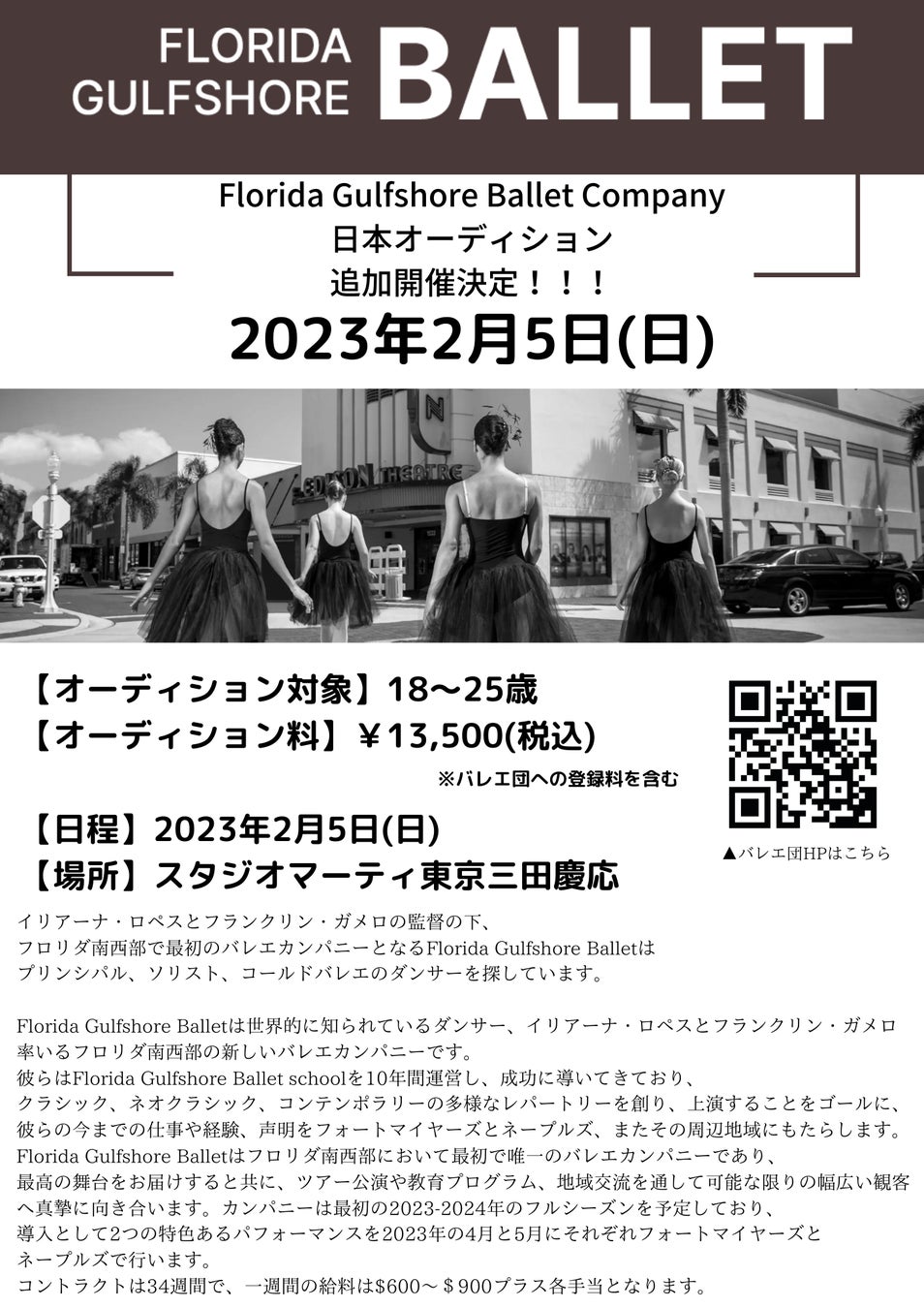 【海外バレエ団】東京/三田にて追加オーディション開催決定!!