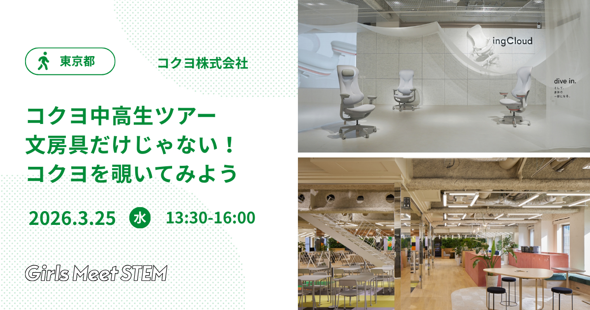 概要:「好奇心を人生に」を掲げるコクヨの最新オフィスを見学。商品開発やデザインなど多様な分野の女性社員と交流し、STEMの学びがキャリアにどうつながるかを知る。