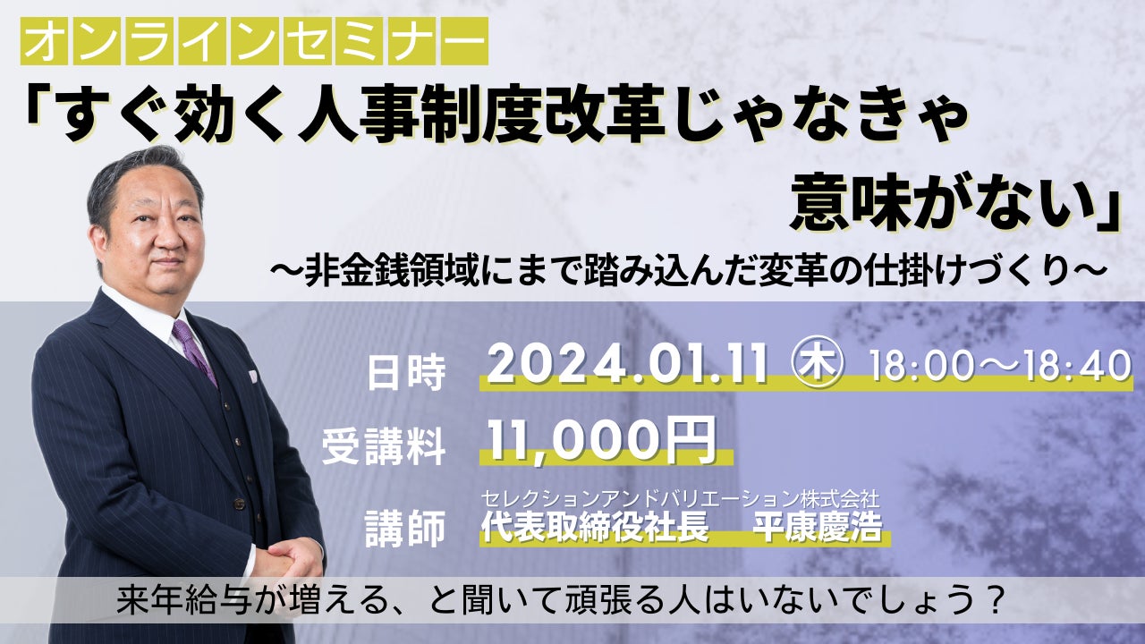 【夕学セミナー】「すぐ効く人事制度改革じゃなきゃ意味がない」~非金銭領域にまで踏み込んだ変革の仕掛けづくり~【2024年01月11日 (木)開催セミナー】