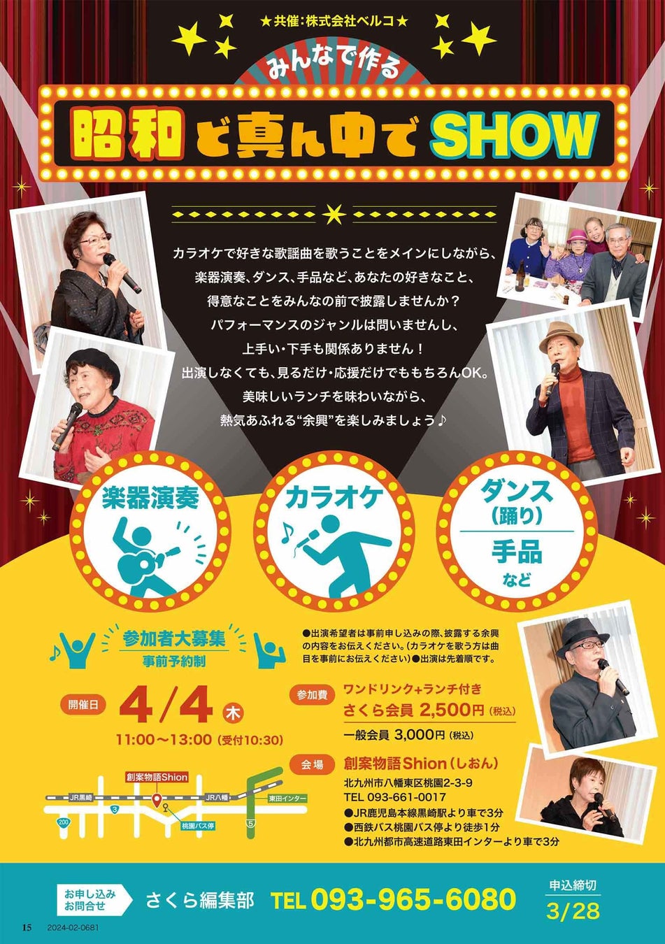 株式会社ベルコでは西日本エリアで情報誌さくらと共催で「みんなで作る昭和ど真ん中でSHOW」を4月4日(木)創案物語Shion(しおん)にて開催いたします。