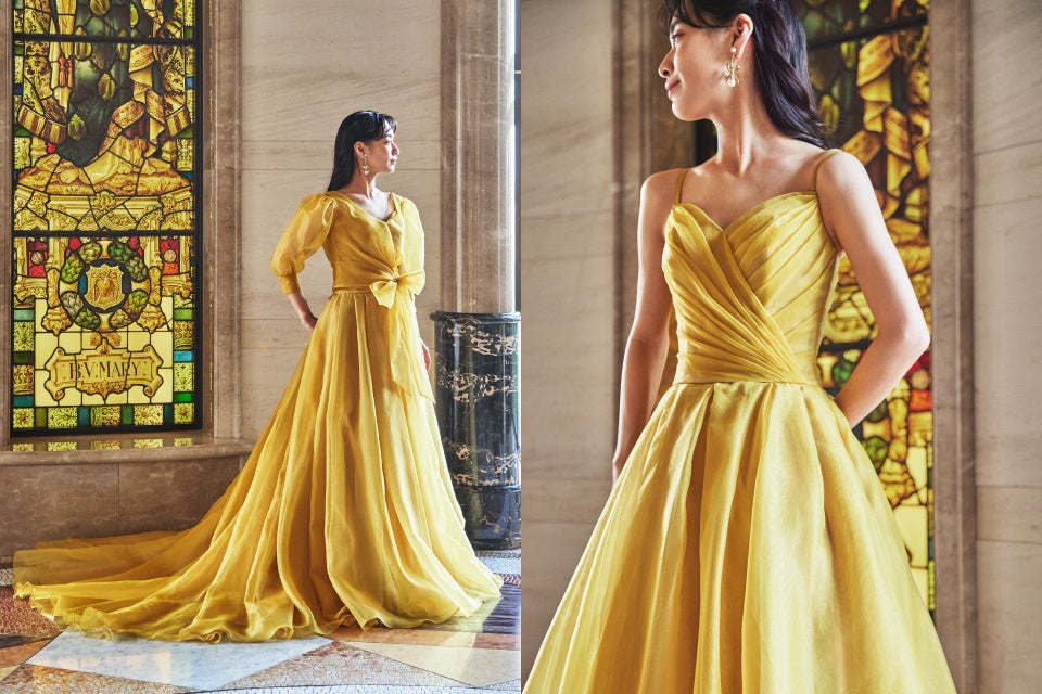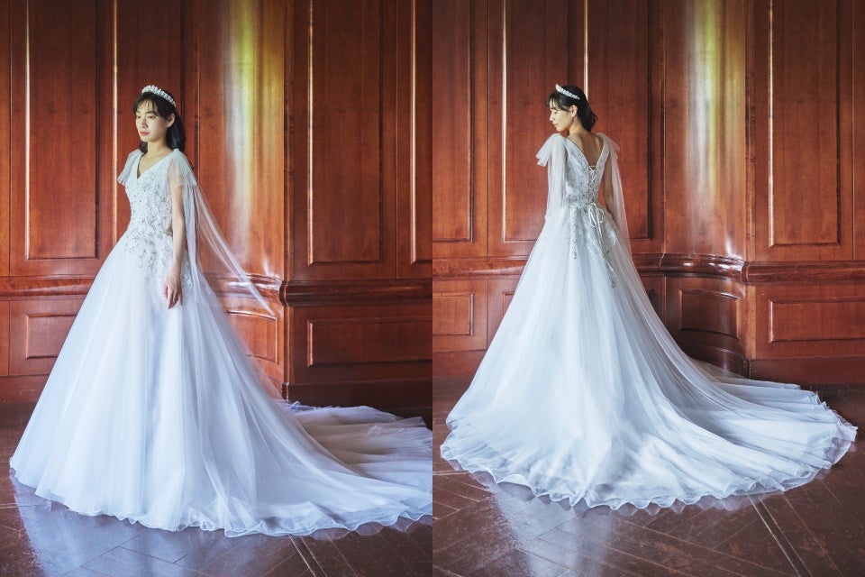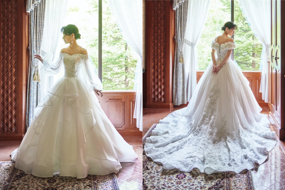 4年ぶりとなるこのコレクションでは全てのドレスでアレンジが可能となっており、ケープやスカート、付け袖などをオン・オフすることで全く異なる表情を楽しめます。フォトウエディングやお色直しの際などにドレスを着替えることなく、イメージチェンジが可能です。