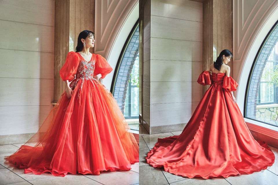 自分なりの着こなし方を追求できる華やかなドレスです。