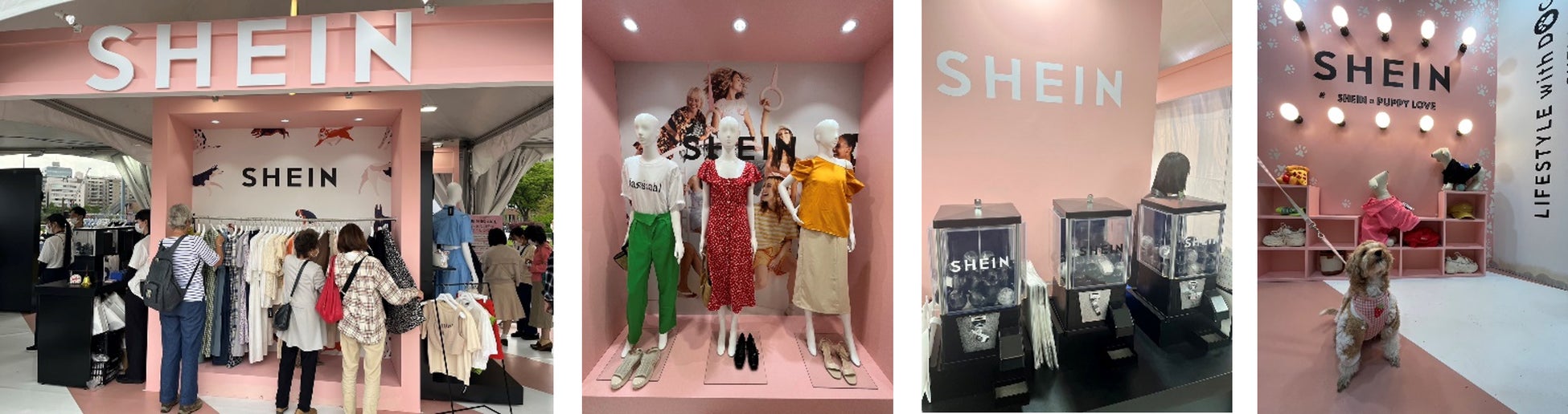 本イベントは、ペットを家族の一員として飼うことを正しく学び、サステナブルなコミュニティ構築を目指す日本最大級の無料の野外ファッションショー&音楽ライブです。コロナ禍で圧倒的に増加したペット需要の裏側には、コロナ禍による収入減少や、飼育に対する認識の甘さからペットを手放すオーナーや、未だ動物虐待といった社会課題が存在しています。「SHEIN」は、ブランドタグライン”Wear Your Wonderful”やブランドメッセージ”SHEIN FOR ALL”のもと、ペット用品も幅広く展開していることから、ペットといつまでも健康に、快適に暮らす社会を目指す本イベントのテーマに共感し、出演者衣装のコーディネートや来場者のTシャツデザインを担当するとともに、SHEINの人気コンテンツが詰まった会場ブース「SHEIN SQUARE」を展開いたしました。