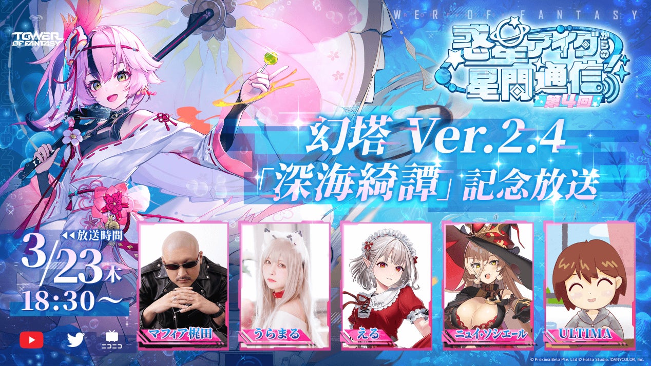 また、Ver.2.4「深海綺譚」のリリースを祝して、3月23日(木)に公式生放送『幻塔 Ver.2.4「深海綺譚」記念放送 -惑星アイダの星間通信 第4回-』を配信します。