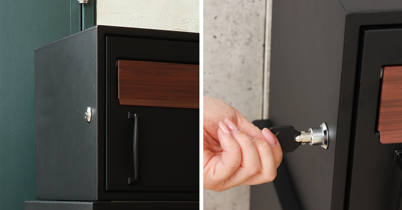 頻繁に利用するポスト部分の施錠は、押すだけで施錠が出来るプッシュキーとなっていて簡単&便利。