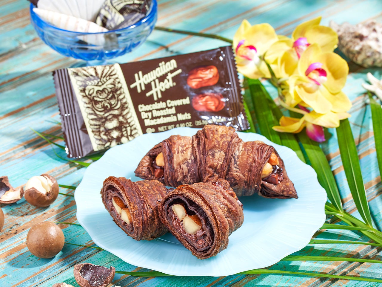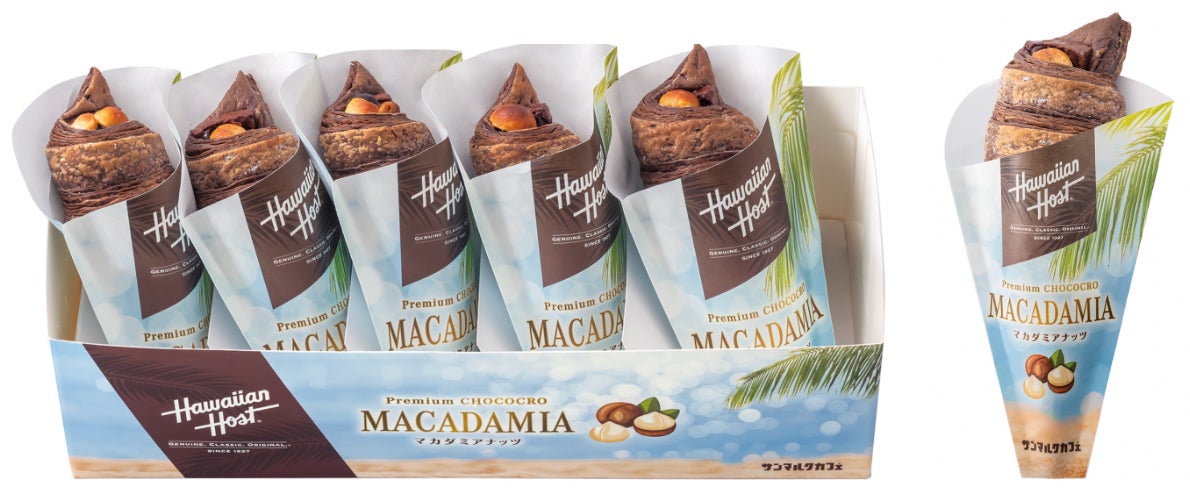 ハワイの老舗チョコレートメーカー・ハワイアンホーストとのコラボレーションメニューがアップグレードして新登場。チョコクロ全体で「マカデミアナッツチョコレート」を感じていただけるように、マカダミアナッツの使用量を昨年と比較して140%に増量。クロワッサンのサクサク食感とともに、ゴロっと大きなナッツをかみ砕くあの食感もお楽しみいただけます。また、「マカデミアナッツチョコレート」のようなマイルドな味わいをより楽しんでいただけるように、クロワッサン生地に練り込まれるチョコレートを昨年よりも増やし、クロワッサン生地で包むチョコレートには今回のコラボに際して開発したオリジナルチョコレートクリームを追加しております。