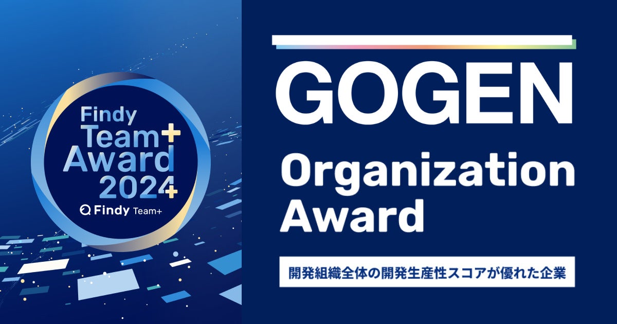 不動産売買支援ハブ「レリーズプラットフォーム」を開発・提供するGOGEN株式会社(本社:東京都港区 代表取締役社長:和田 浩明)は、エンジニアのプラットフォームを提供するファインディ株式会社(以下、ファインディ)が運営する 「Findy Team+」利用企業の中から、開発生産性が優れたエンジニア組織が表彰される「Findy Team+ Award 2024」 において、「Organization Award 【Small Division】」で表彰されたことをお知らせいたします。