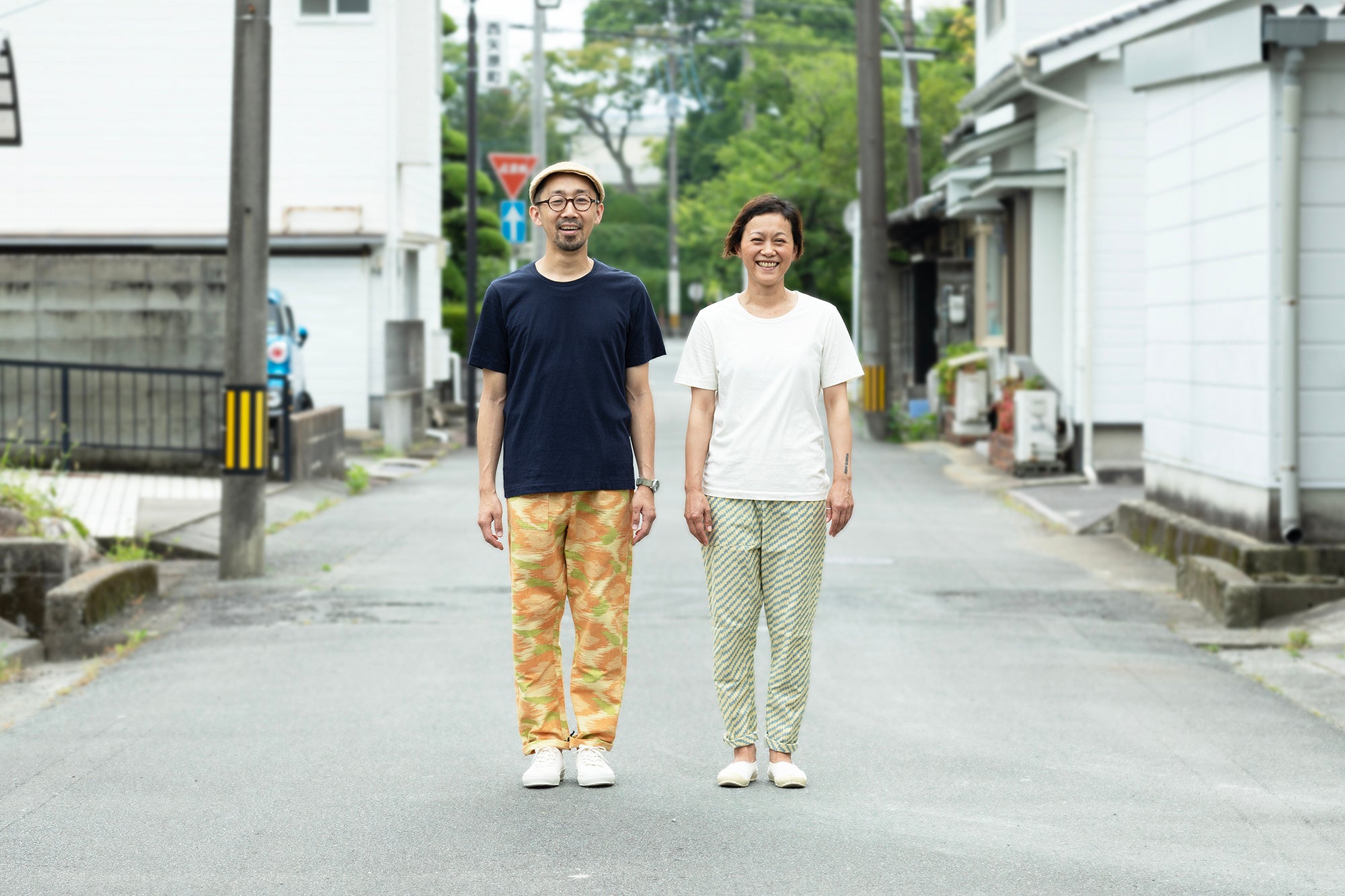 1948年創業の下川織物は八女市に唯一残る久留米絣織元。2代目の下川富彌さんは主軸で着物生地用としてつくっていた柄生地に加えて、洋服地向けとして無地生地の生産を本格的に開始。現在は3代目の下川強臓さんが受け継ぎ、生産や営業を経験を経て、糸の風合いや染め方など自分なりの技法の実験を積み重ねています。近年ではフィンランド、スウェーデンなど海外アーティストやデザイナーとの交流により作品が生み出されています。
