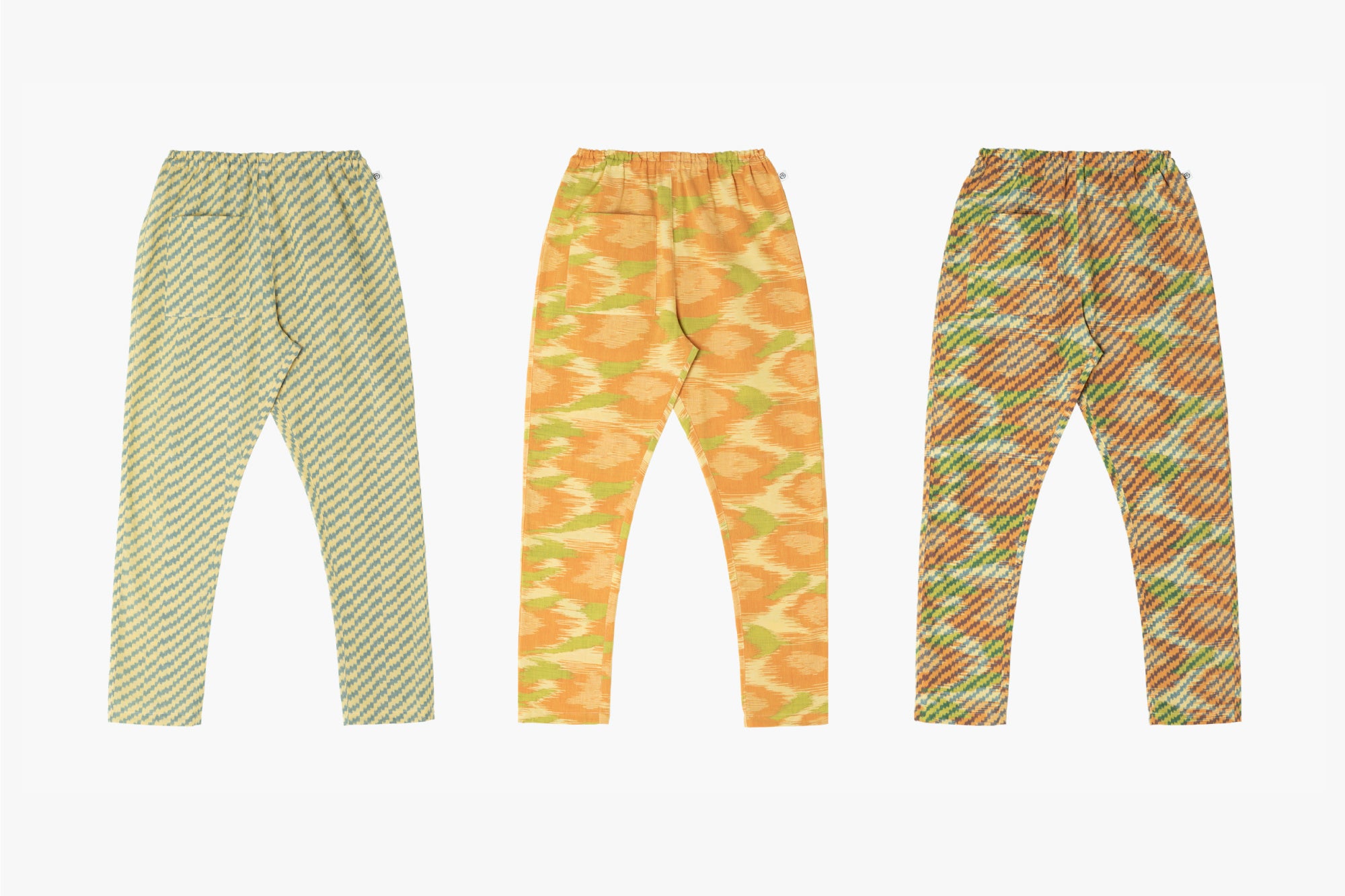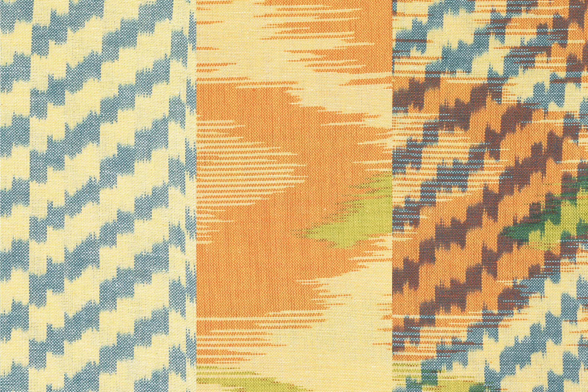 「たて絣」、「よこ絣・つまみ染」、「たてよこ絣・つまみ染」で表現したそれぞれ3点のMONPEは、久留米絣の技法や絣模様の成り立ち、また模様の「ゆらぎ」、その表現手法の奥深さを体感いただけるMONPEへと仕上がりました。