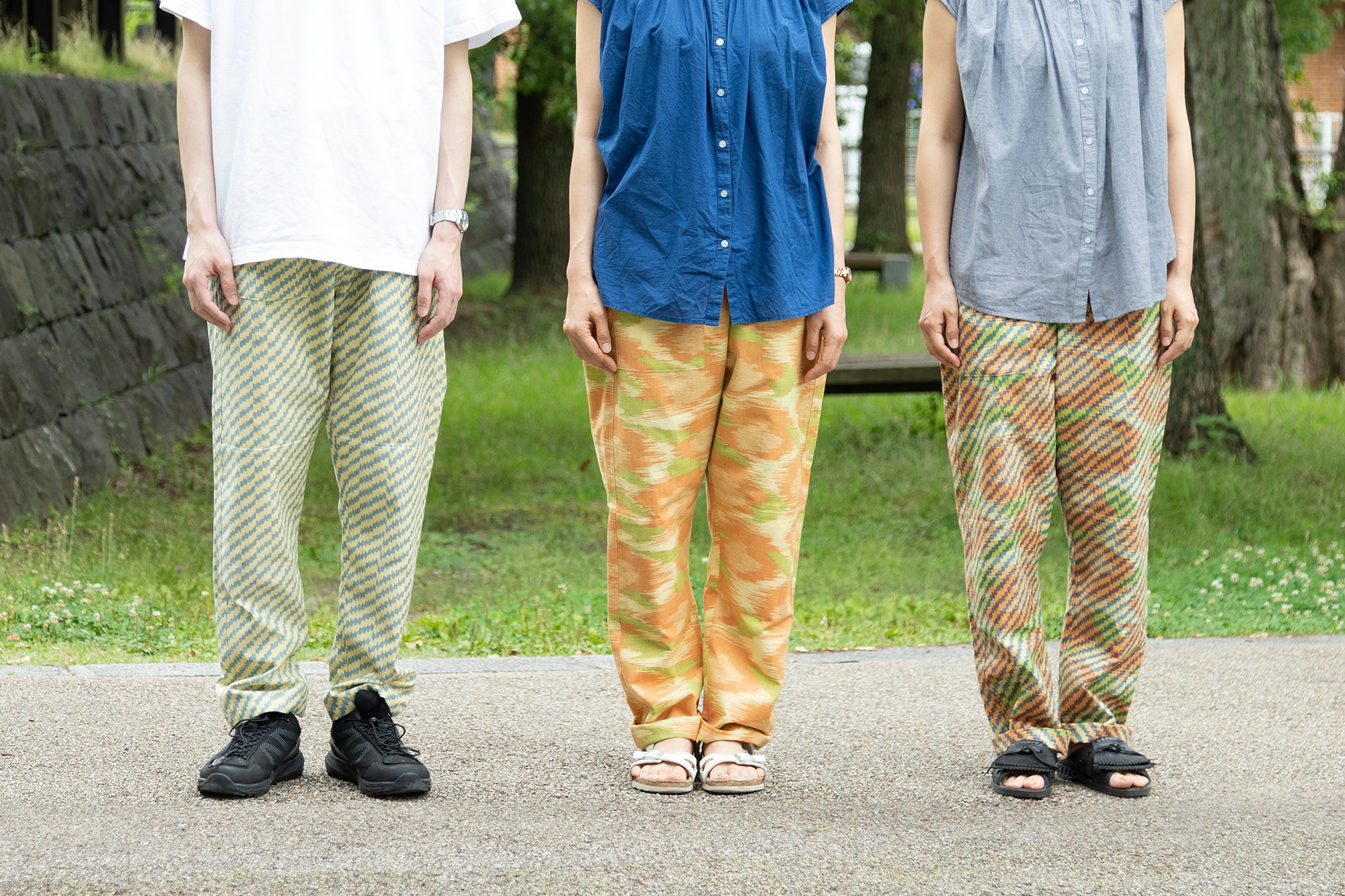 もんぺ博覧会で初登場!テキスタイルデザイナー 光井花さんのデザインモチーフを久留米絣で表現。「ゆらぎ」をテーマにしたMONPEです