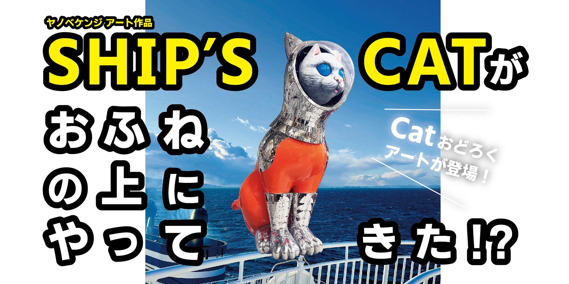 SHIP'S CATは、2017年に始まったヤノベケンジ氏の彫刻作品シリーズです。帆やロープなどの船体をかじり、積み荷や食料を食べ、疫病をもたらすネズミから、乗組員や船を守る存在として親しまれてきた「船乗り猫」をモチーフにしています。GINZA SIXや 大阪中之島美術館、茨木市文化・子育て複合施設「おにクル」など、これまで各地に展示されてきた「SHIP'S CAT」シリーズですが、現実の船の上に設置されるのは今回が世界初となります。