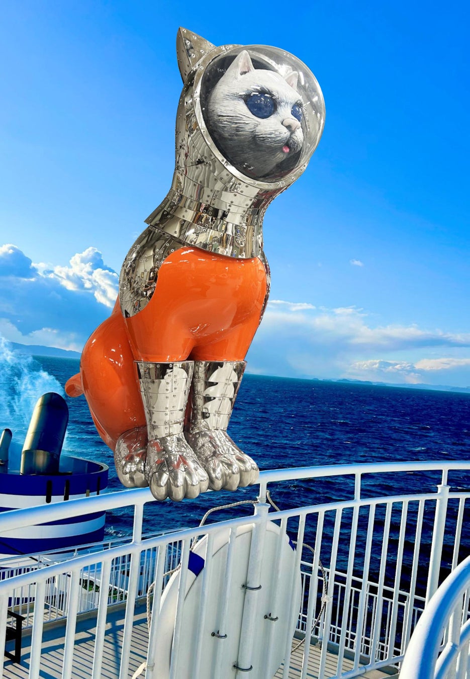 ヤノベケンジ「SHIP’S CAT」が、神戸三宮発のジャンボフェリー「あおい」展望デッキに!?|瀬戸内国際芸術祭2025作品