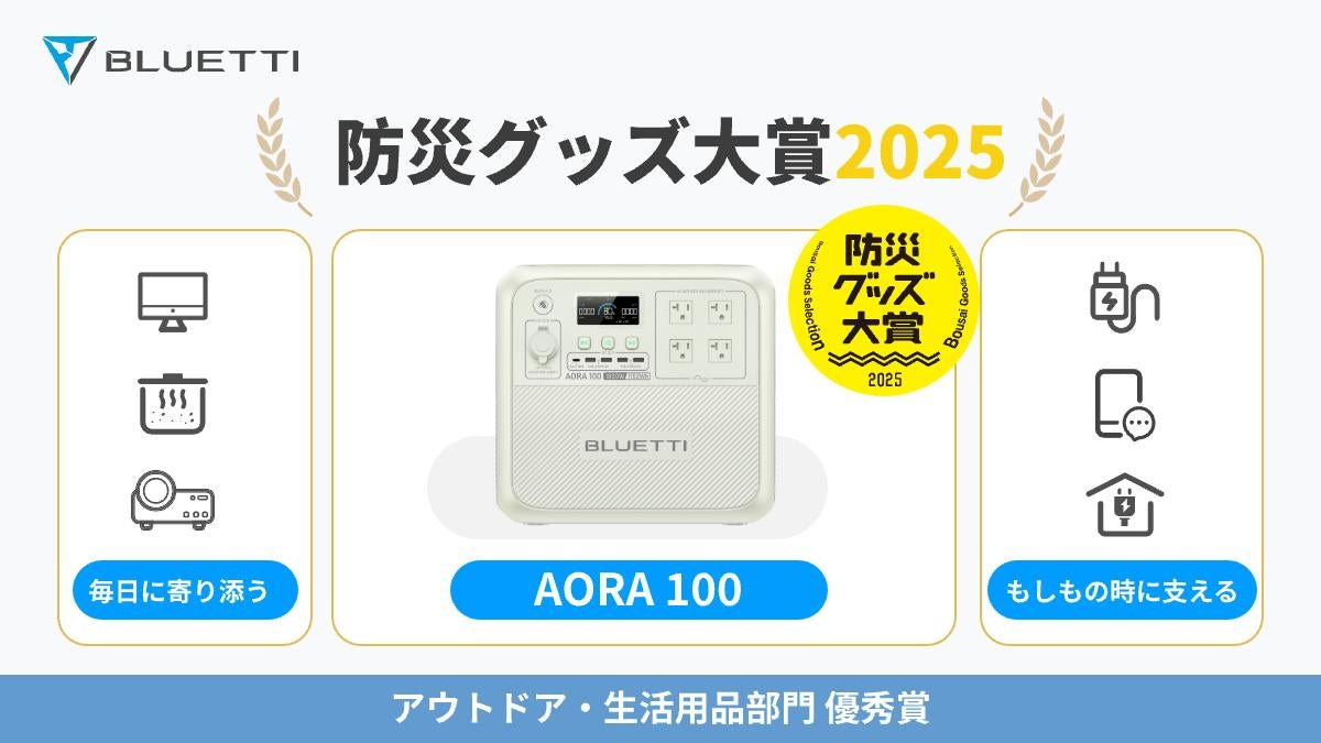 15 年以上にわたりポータブル電源とクリーンエネルギー分野で信頼と実績を築いてきたパイオニア、BLUETTI JAPAN(本社:東京都千代田区)は、2025年3月に新発売となったポータブル電源「AORA 100」にて、「防災グッズ⼤賞2025」(主催:一般社団法人災害防止研究所)における「優秀賞」を受賞したことをお知らせします。