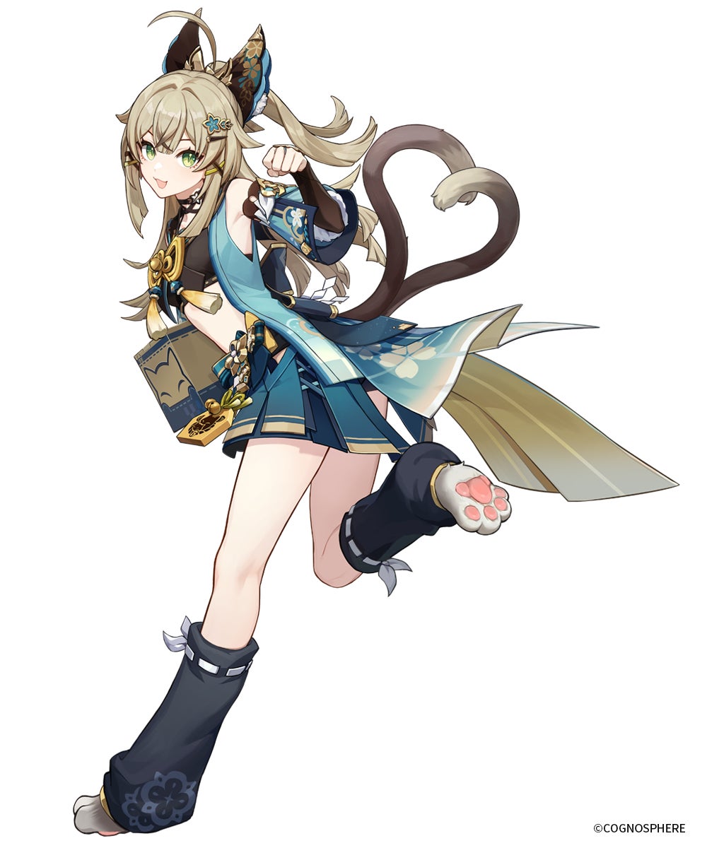 スキル一回押しで、猫又返しを繰り出し、草元素範囲ダメージを与え、安全運送シールドを張る。長押しで、安全運送シールドを張り、ネコ箱急便状態となって素早く移動しながら戦う。