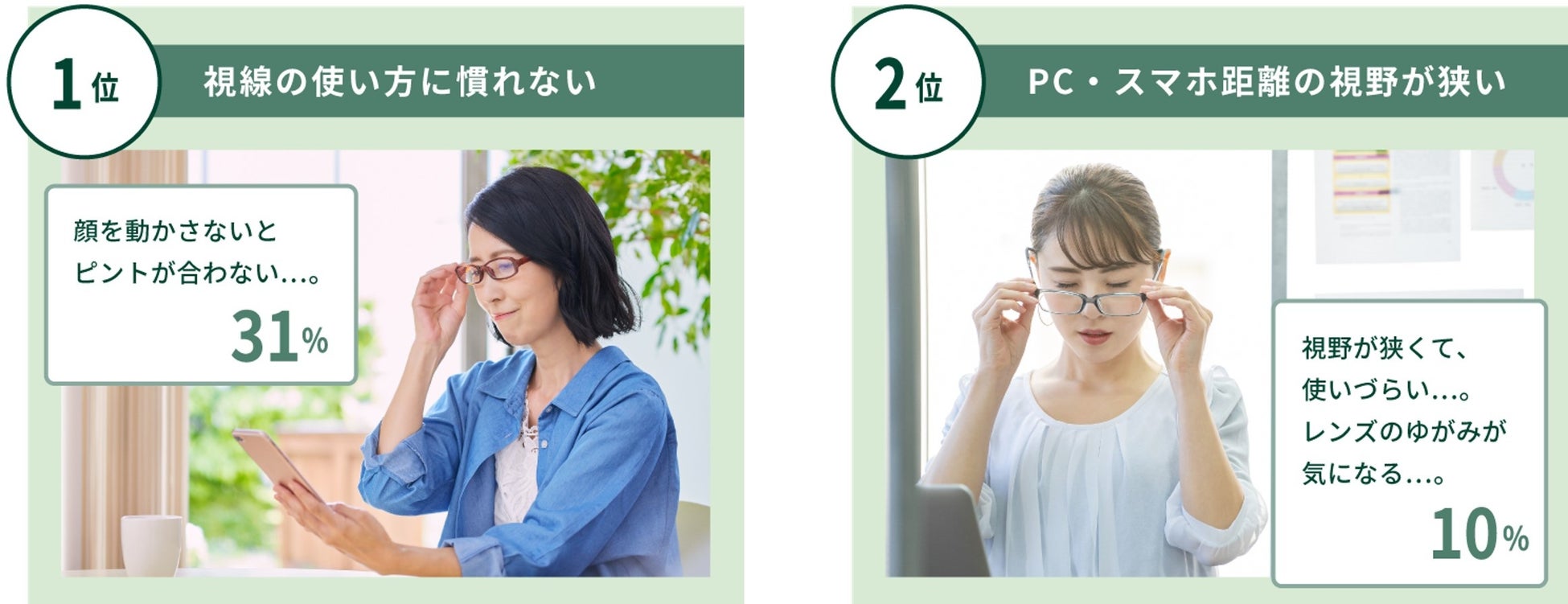 眼鏡光学出版(株)の「眼鏡DB2022」によると、遠近両用レンズユーザーの4人に1人は「視線の使い方に慣れない」などの理由で遠近両用レンズについて不満を抱いていることが分かりました。
